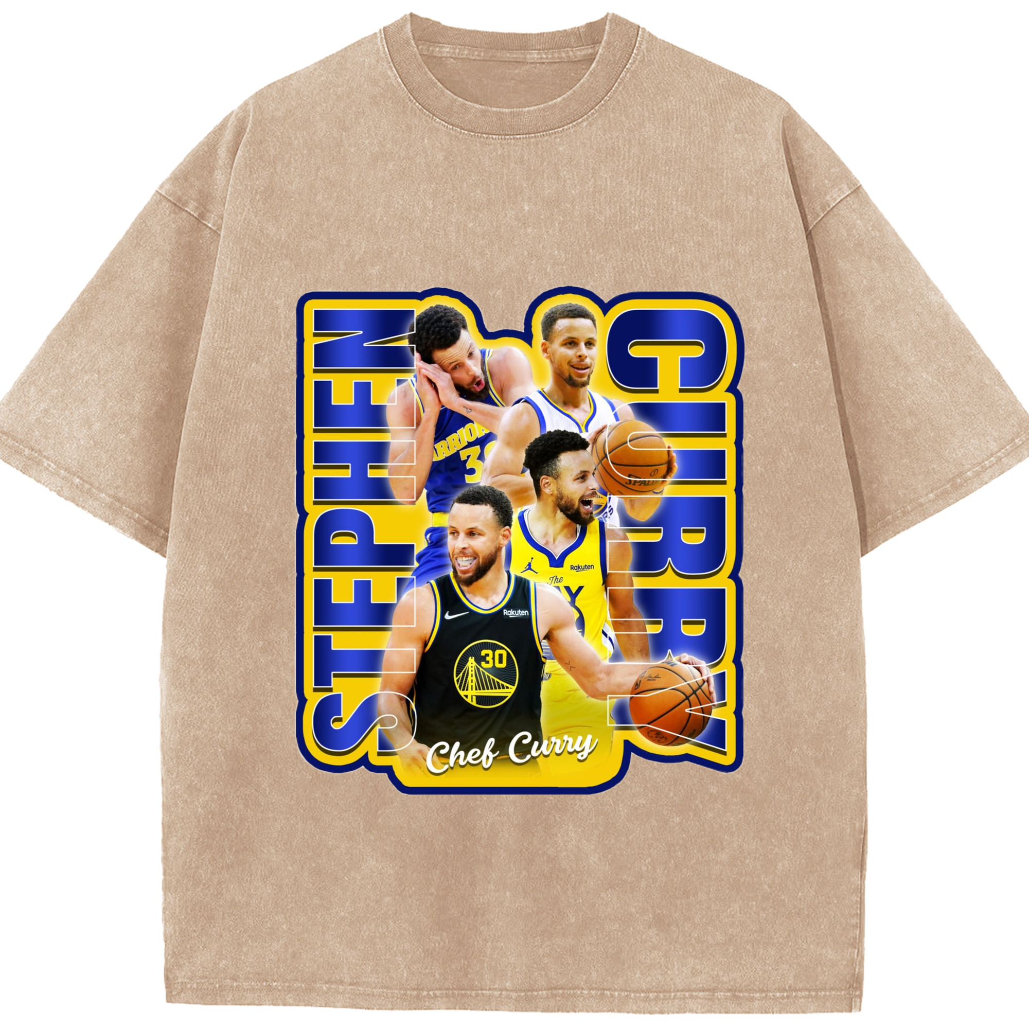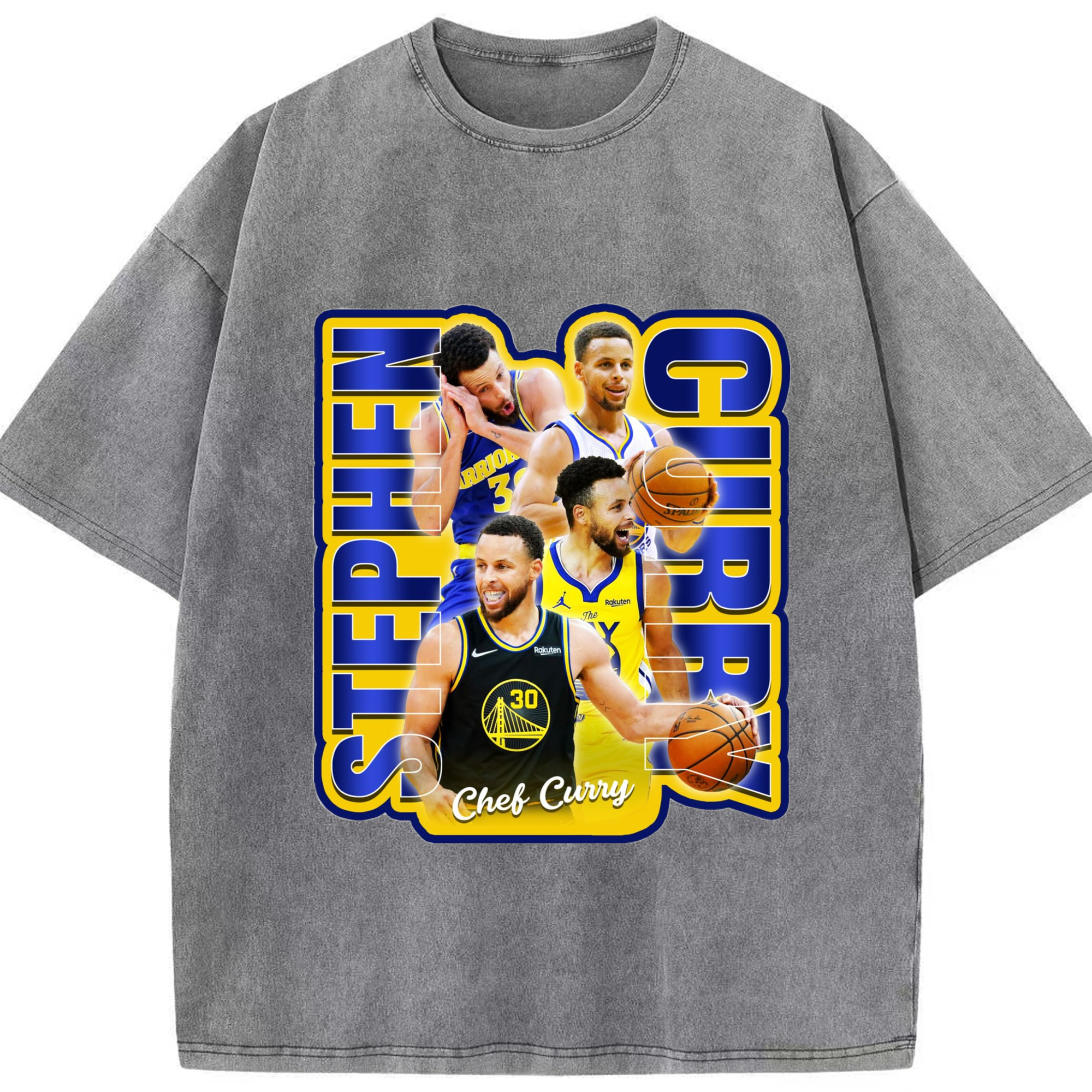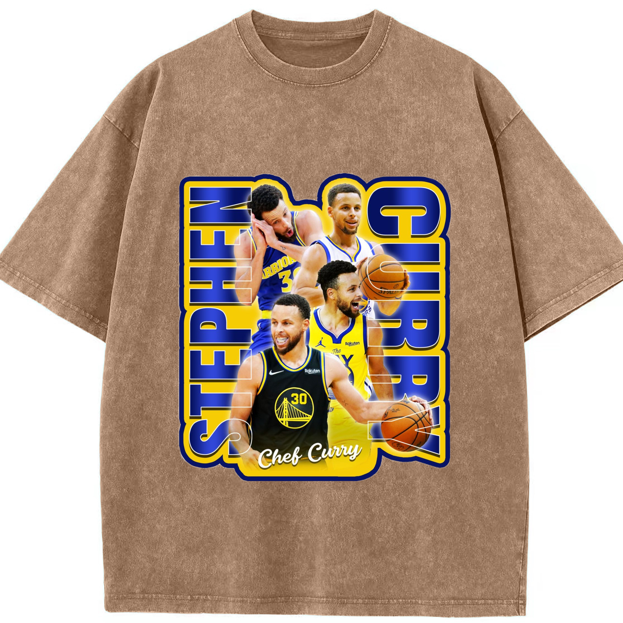 Steph Curry Golden State Warriors collage t-shirt - Washed Vintage Look 230g Cotton Oversized T-Shirt With Front Heat Transfer Print – Soft, Lightweight, Stylish Fit – Comfortable Casual Wear For Sports & Everyday Use