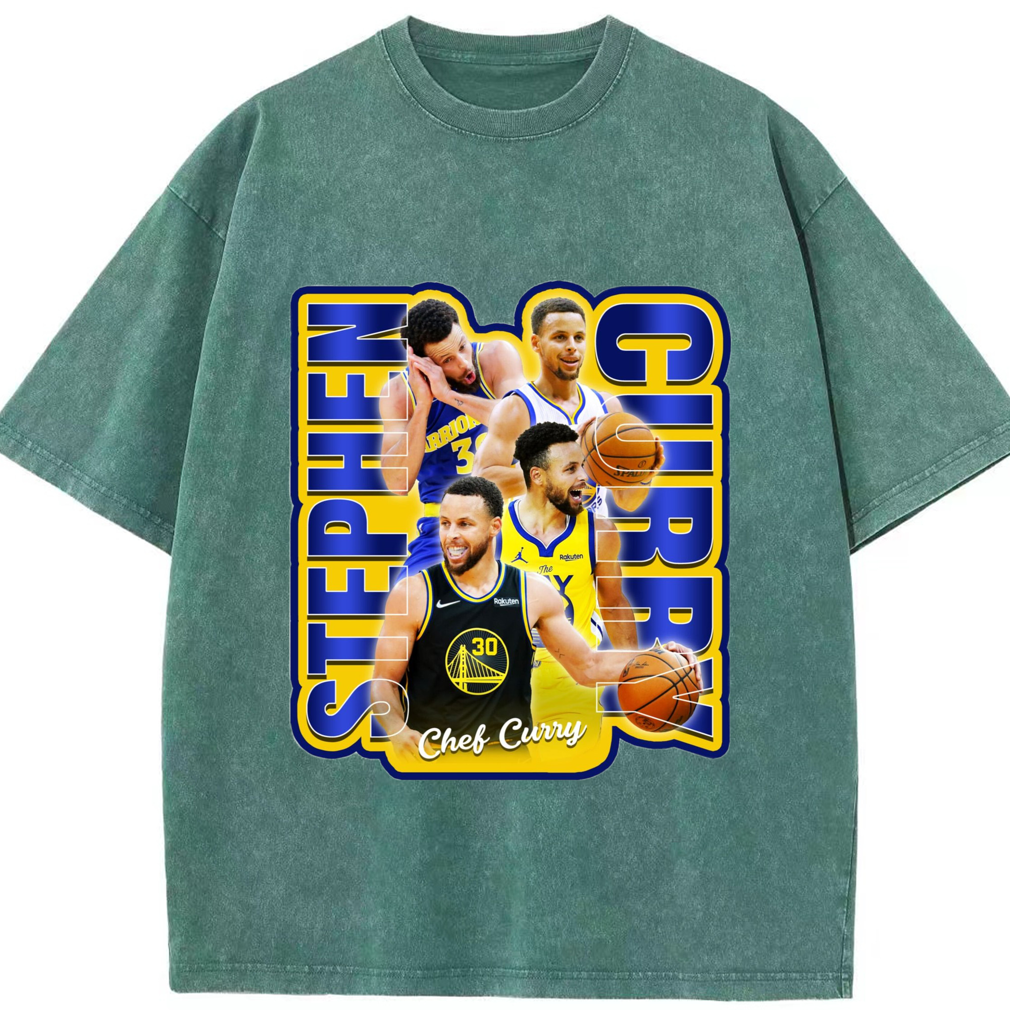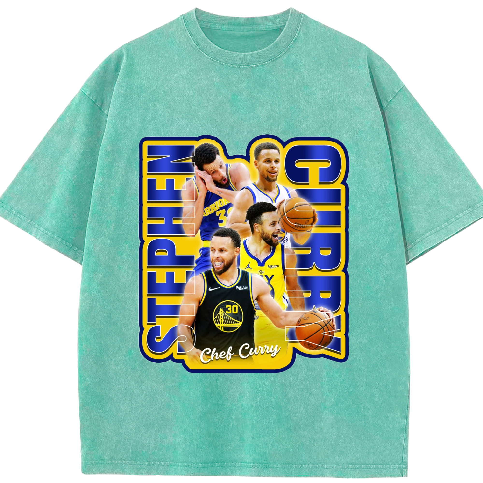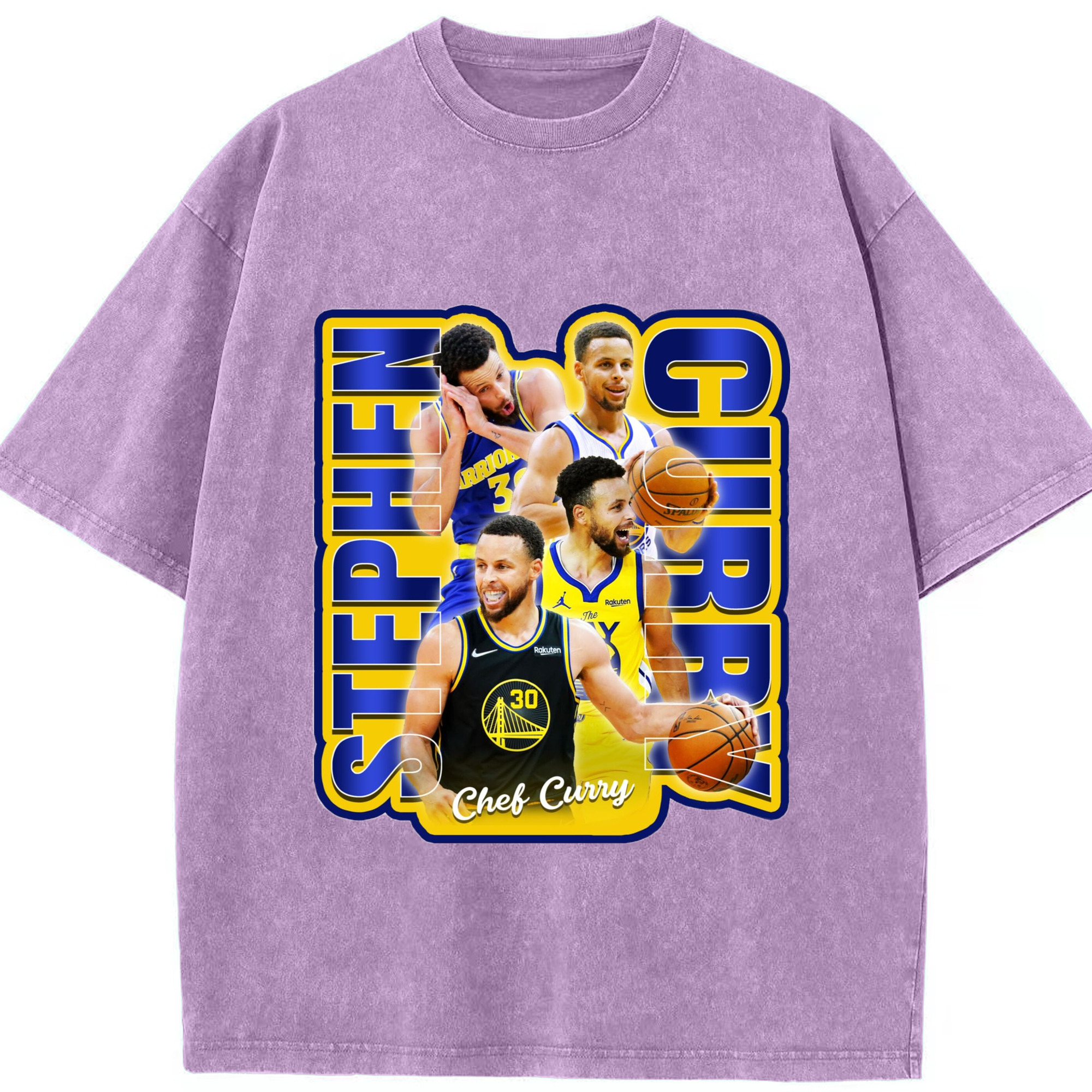 Steph Curry Golden State Warriors collage t-shirt - Washed Vintage Look 230g Cotton Oversized T-Shirt With Front Heat Transfer Print – Soft, Lightweight, Stylish Fit – Comfortable Casual Wear For Sports & Everyday Use