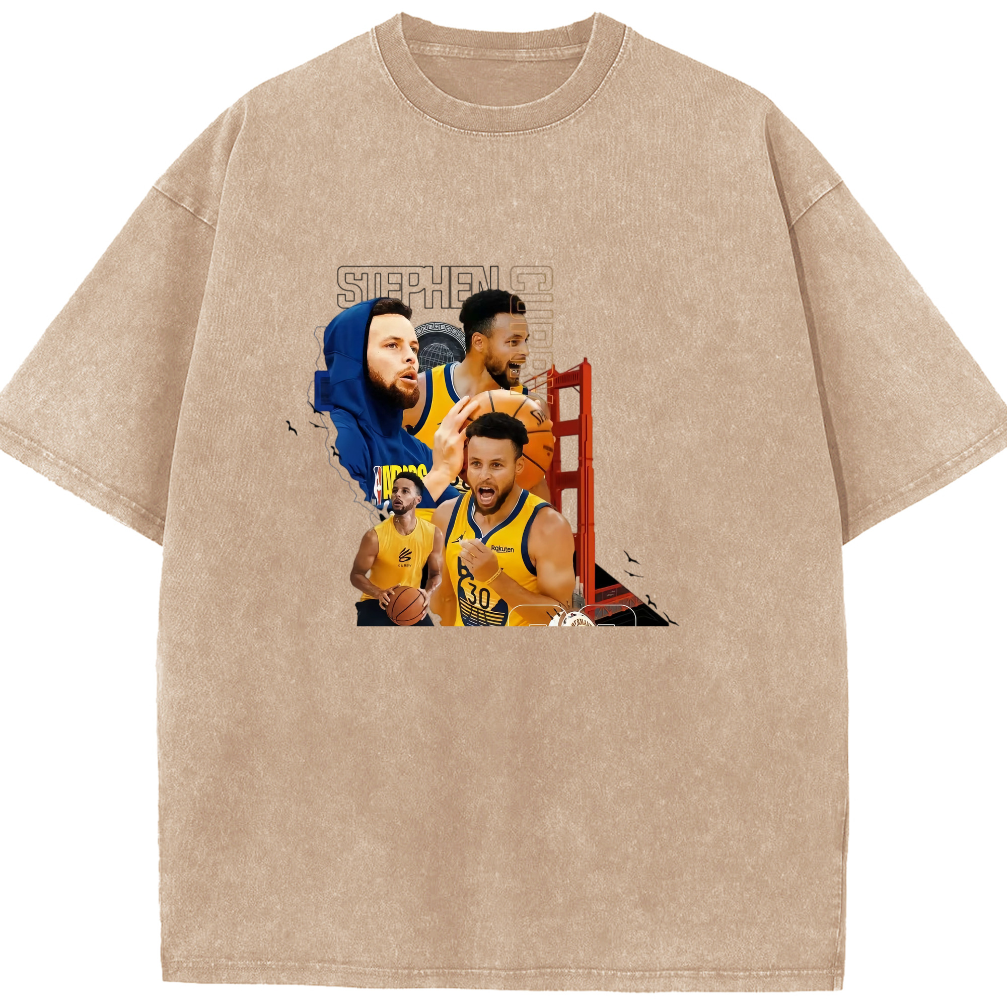Stephen Curry Golden State Warriors Shirt - Washed Vintage Look 230g Cotton Oversized T-Shirt With Front Heat Transfer Print – Soft, Lightweight, Stylish Fit – Comfortable Casual Wear For Sports & Everyday Use