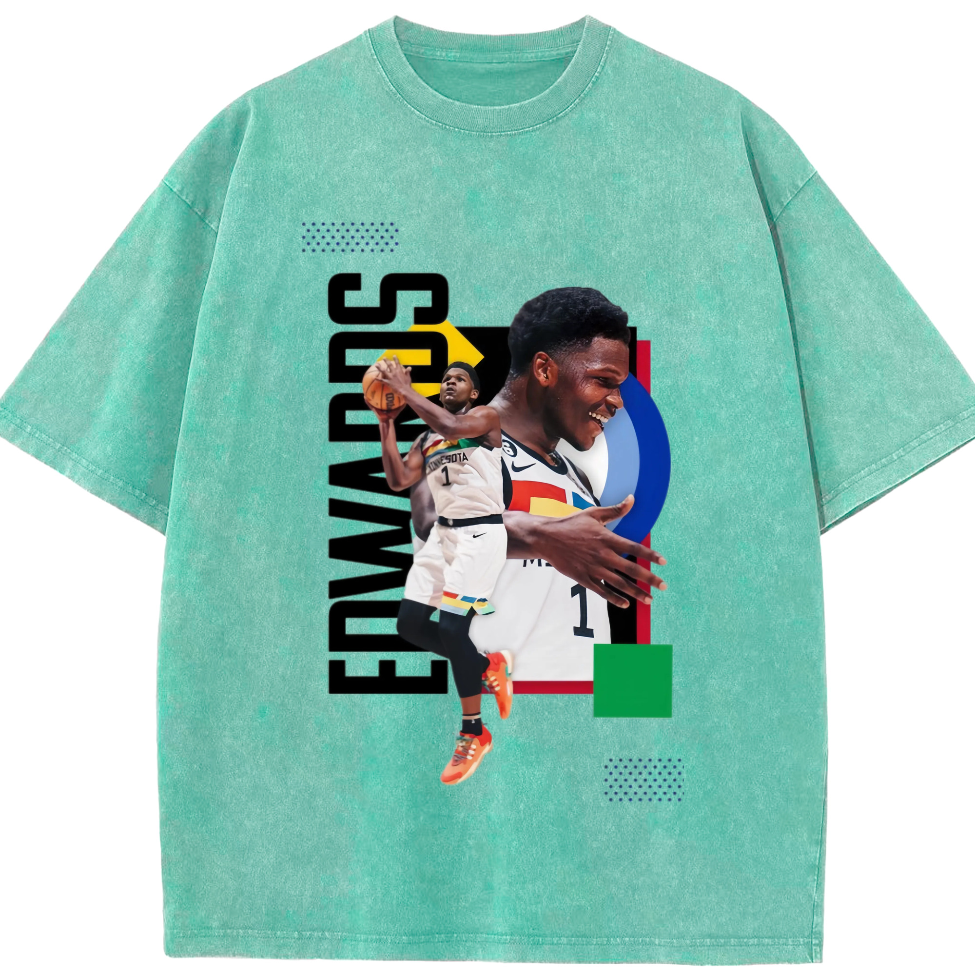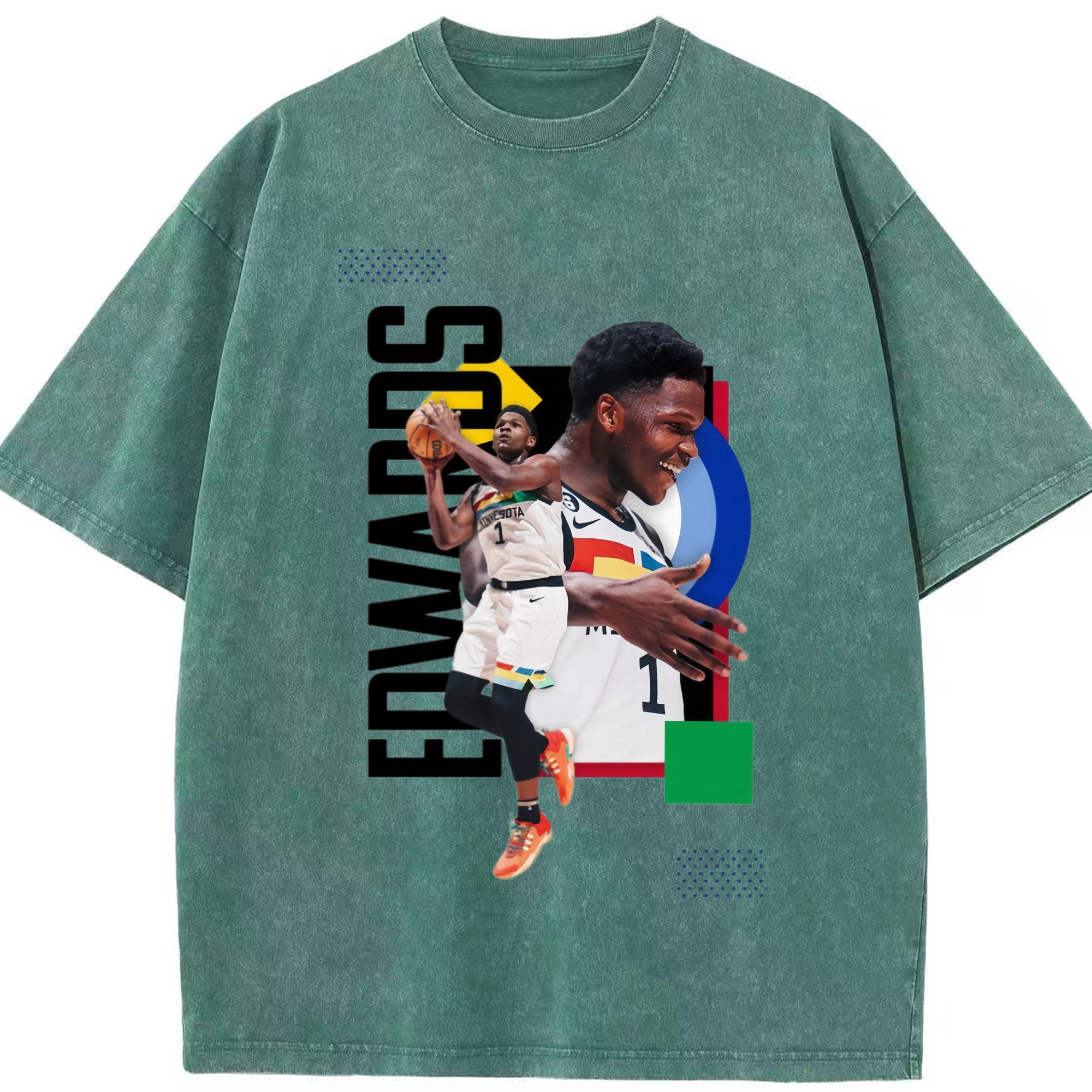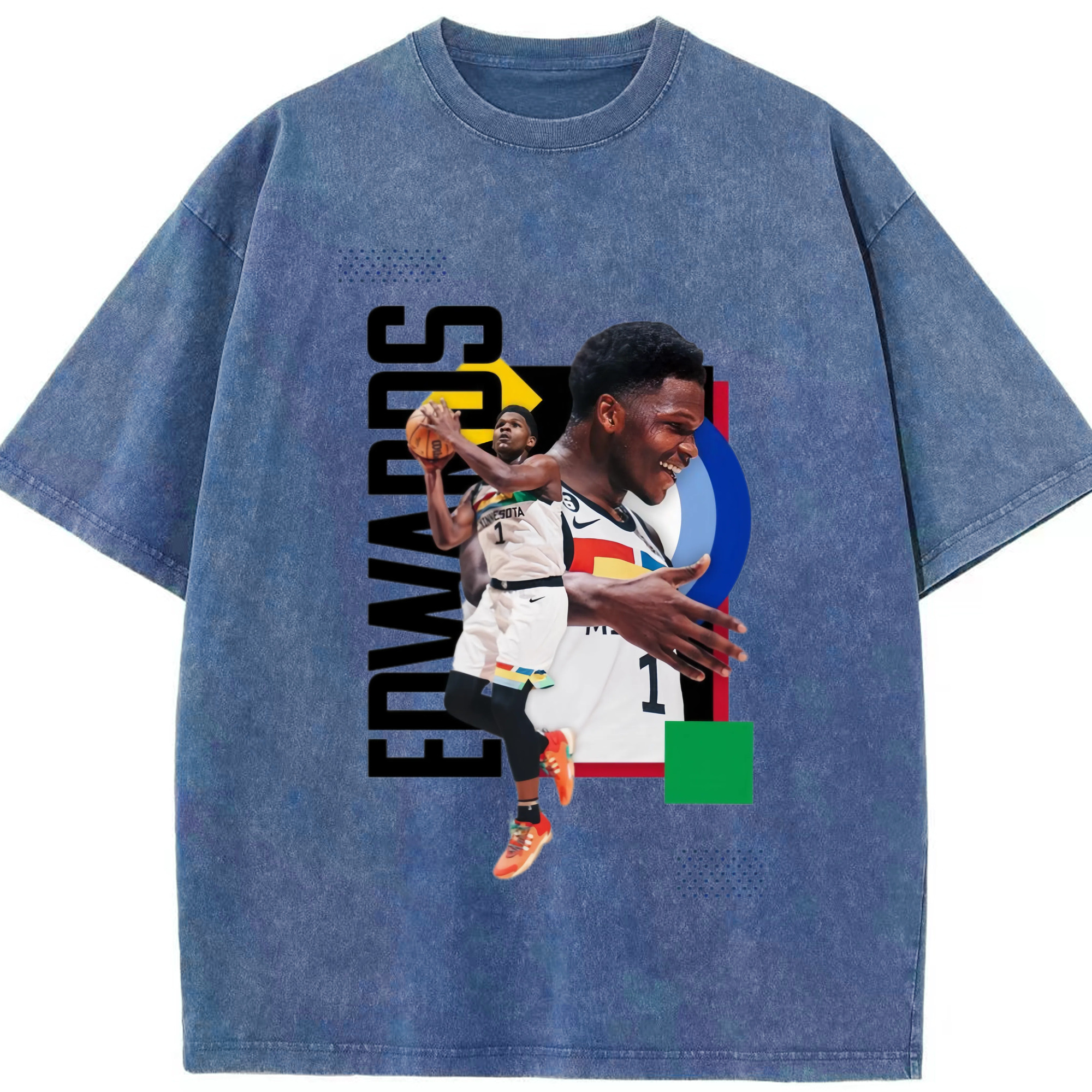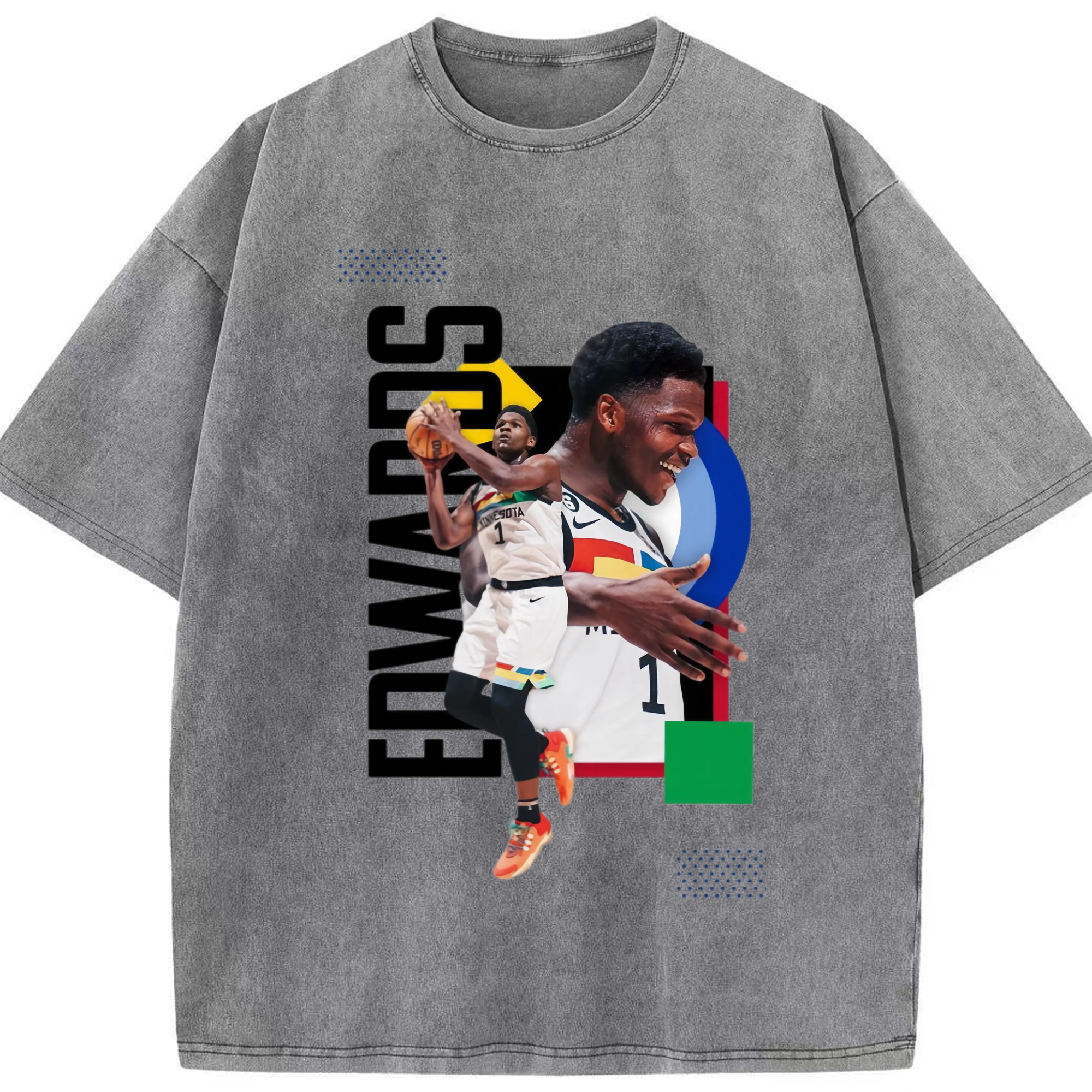 Timberwolves Anthony Edwards #5 T‑Shirt - Washed Vintage Look 230g Cotton Oversized T-Shirt With Front Heat Transfer Print – Soft, Lightweight, Stylish Fit – Comfortable Casual Wear For Sports & Everyday Use