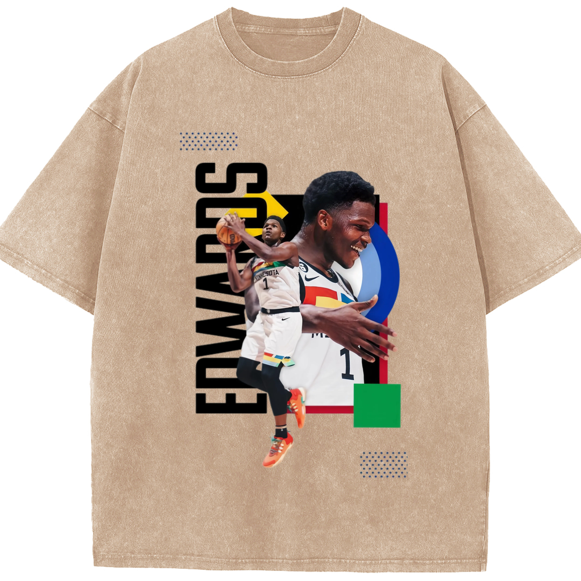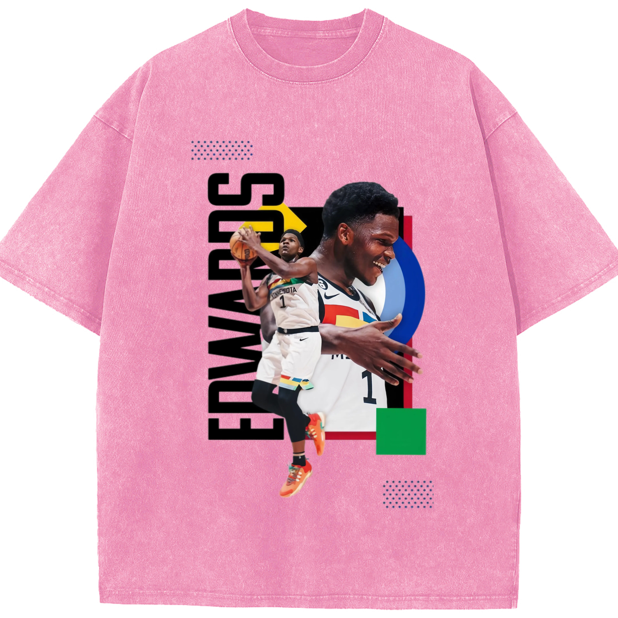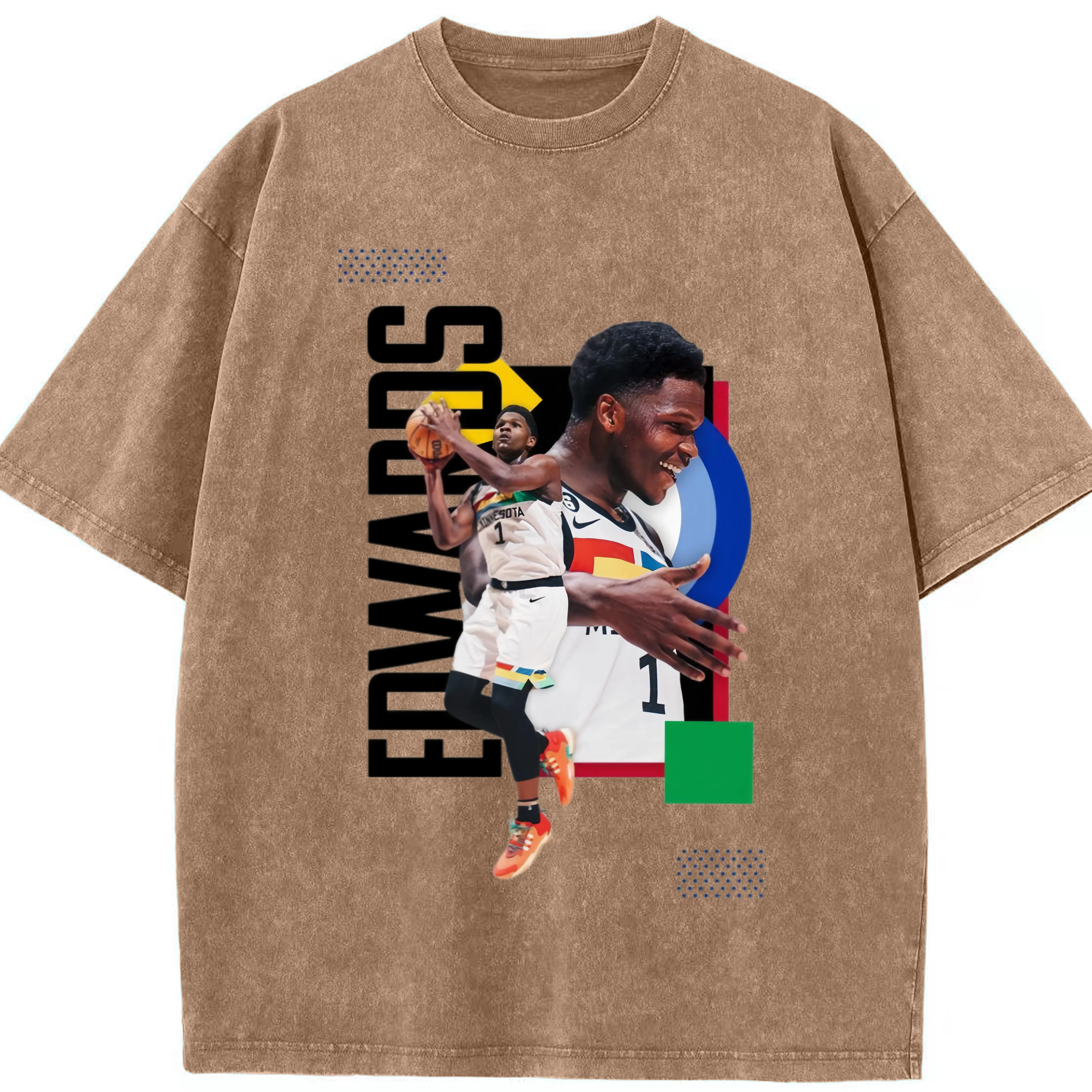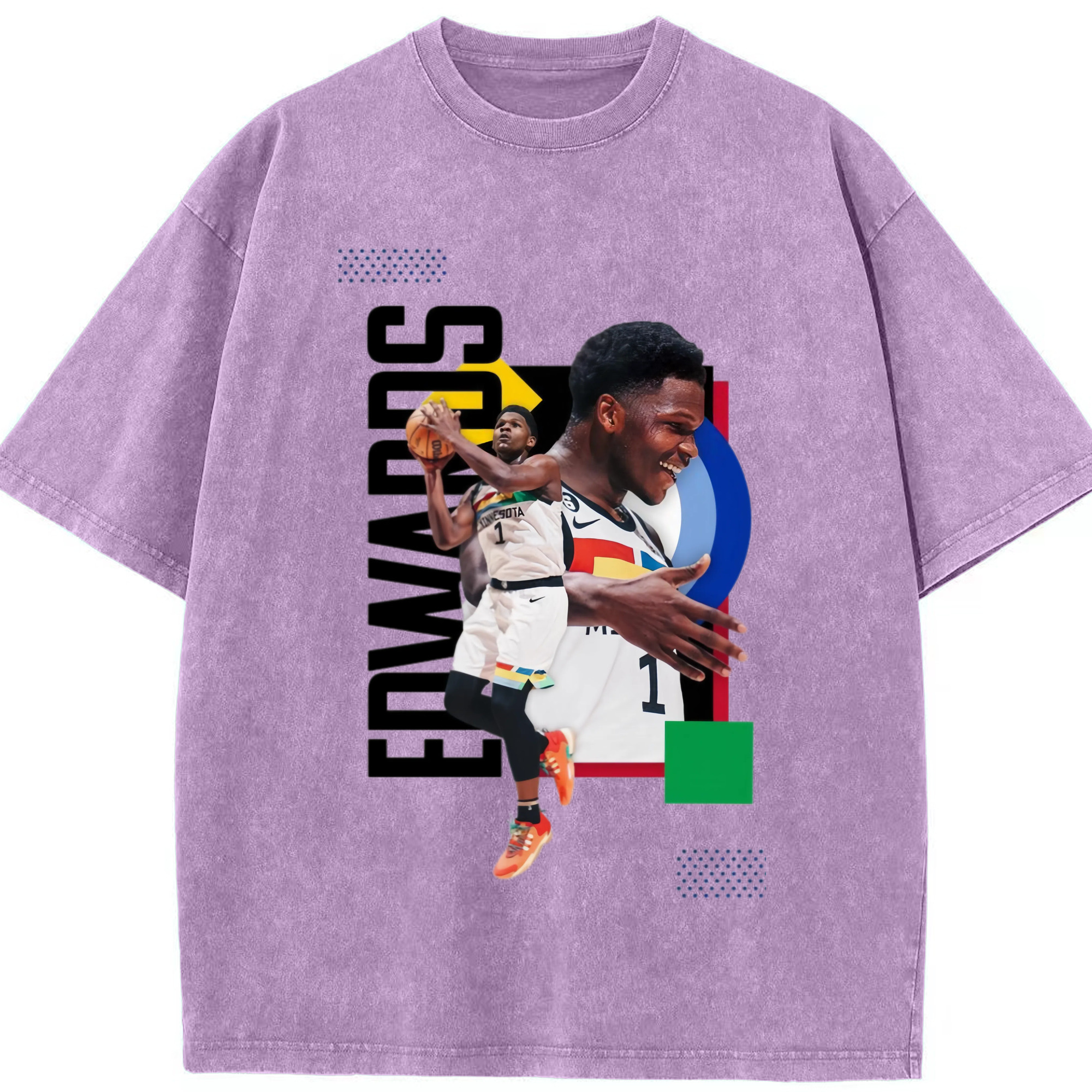 Timberwolves Anthony Edwards #5 T‑Shirt - Washed Vintage Look 230g Cotton Oversized T-Shirt With Front Heat Transfer Print – Soft, Lightweight, Stylish Fit – Comfortable Casual Wear For Sports & Everyday Use