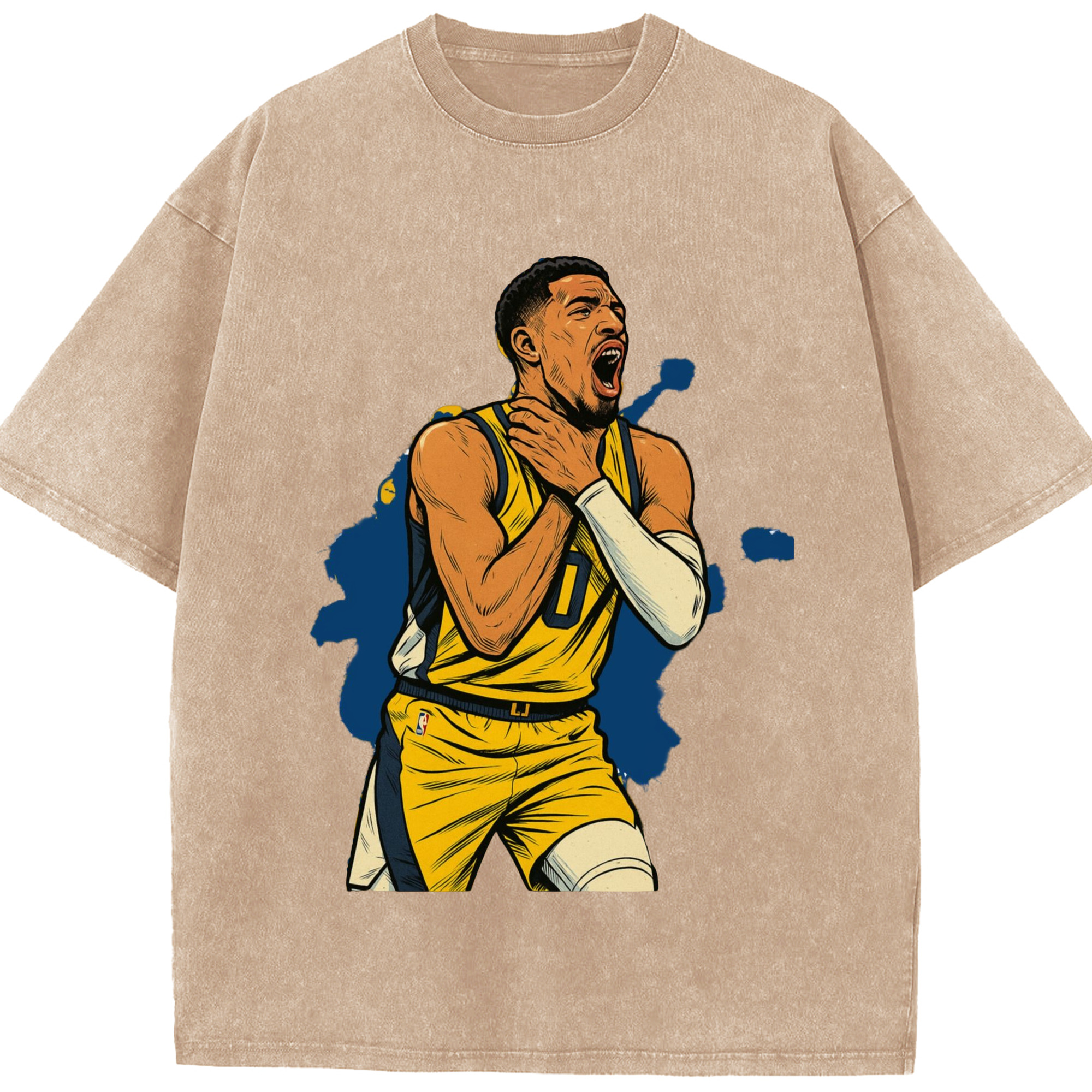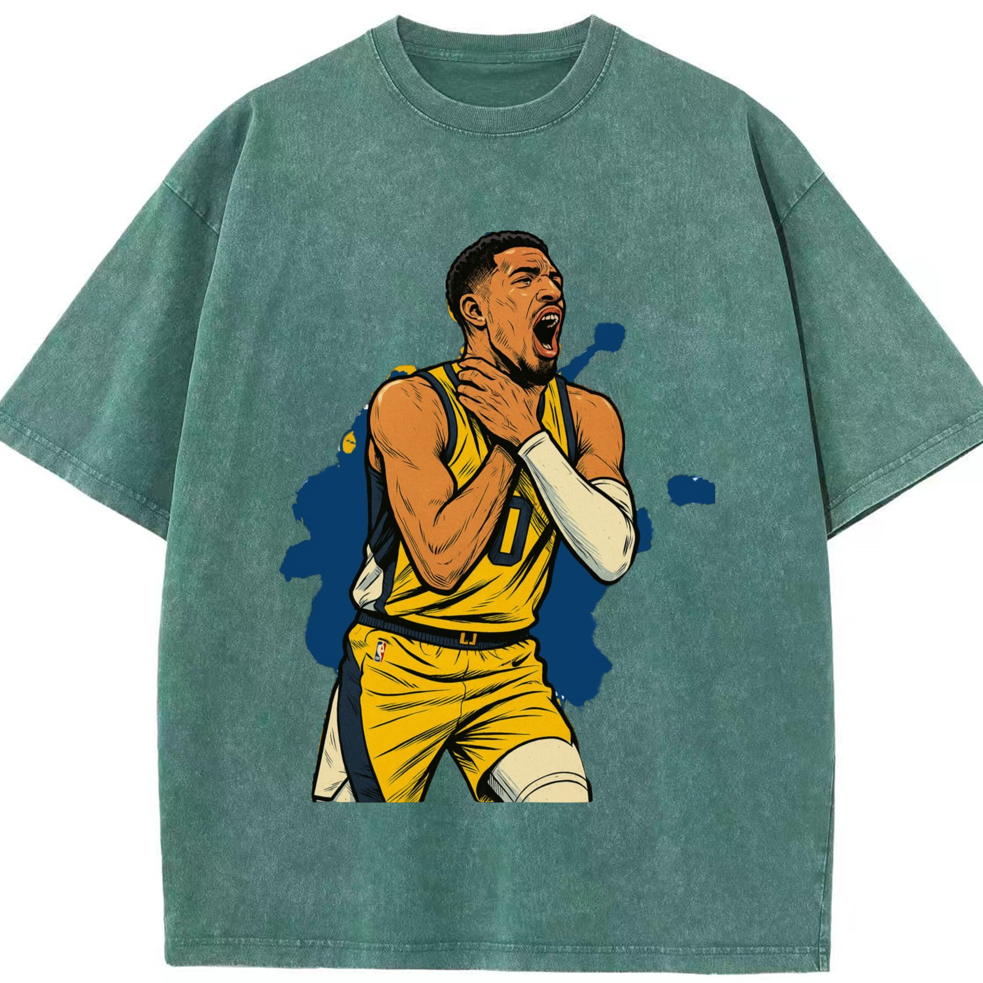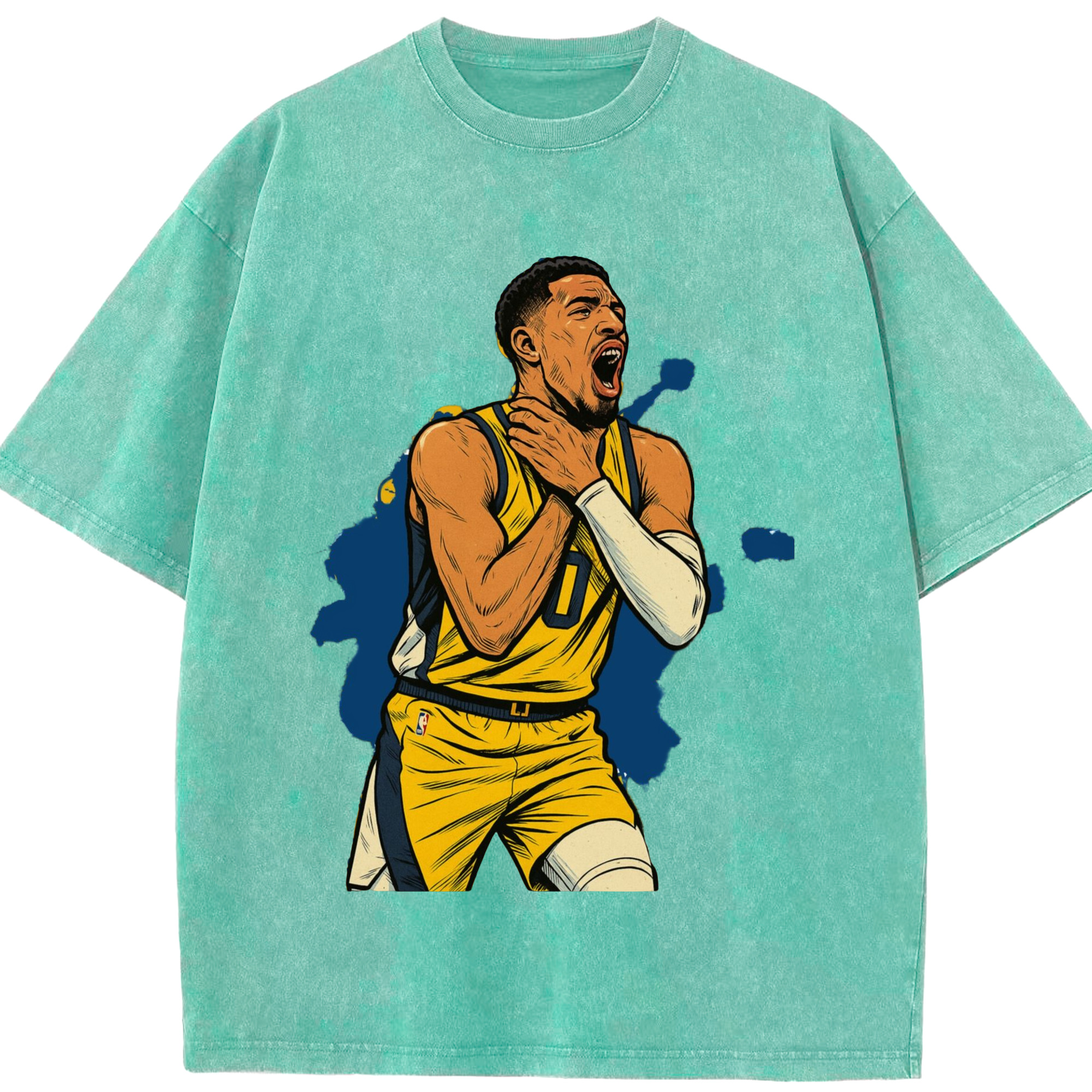 Tyrese Haliburton #0 Colored painting Graphic T‑shirt - Washed Vintage Look 230g Cotton Oversized T-Shirt With Front Heat Transfer Print – Soft, Lightweight, Stylish Fit – Comfortable Casual Wear For Sports & Everyday Use