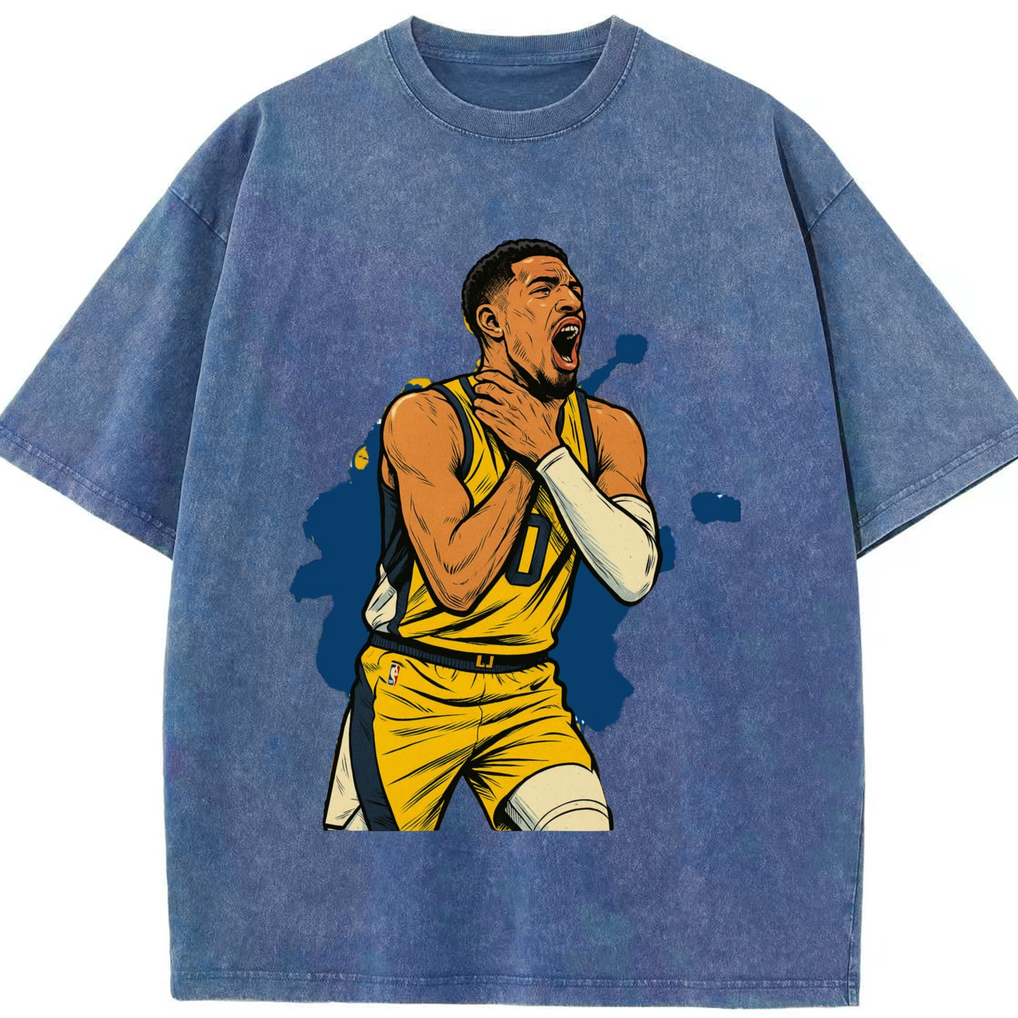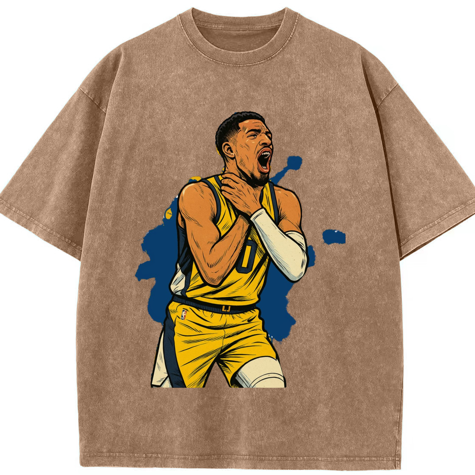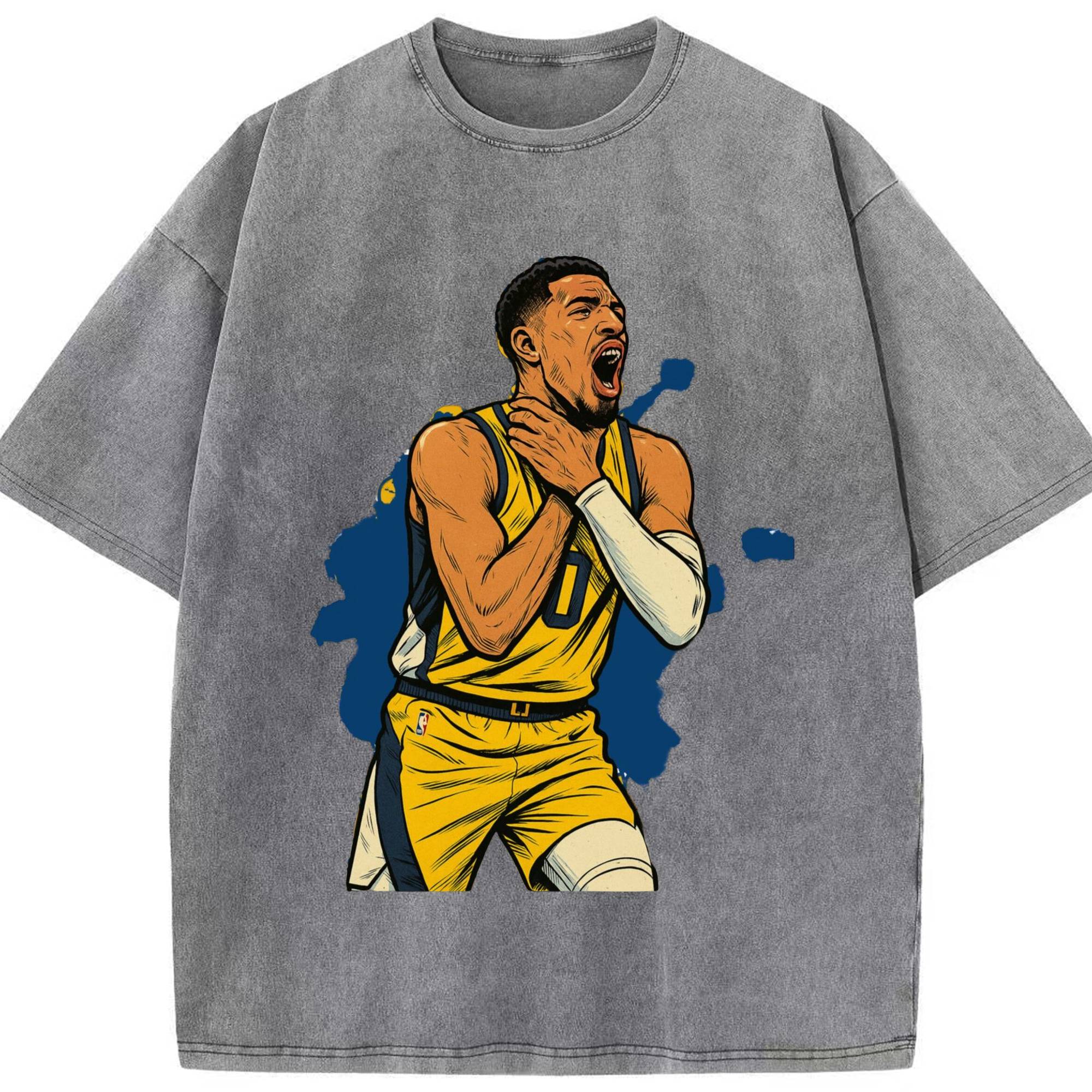 Tyrese Haliburton #0 Colored painting Graphic T‑shirt - Washed Vintage Look 230g Cotton Oversized T-Shirt With Front Heat Transfer Print – Soft, Lightweight, Stylish Fit – Comfortable Casual Wear For Sports & Everyday Use