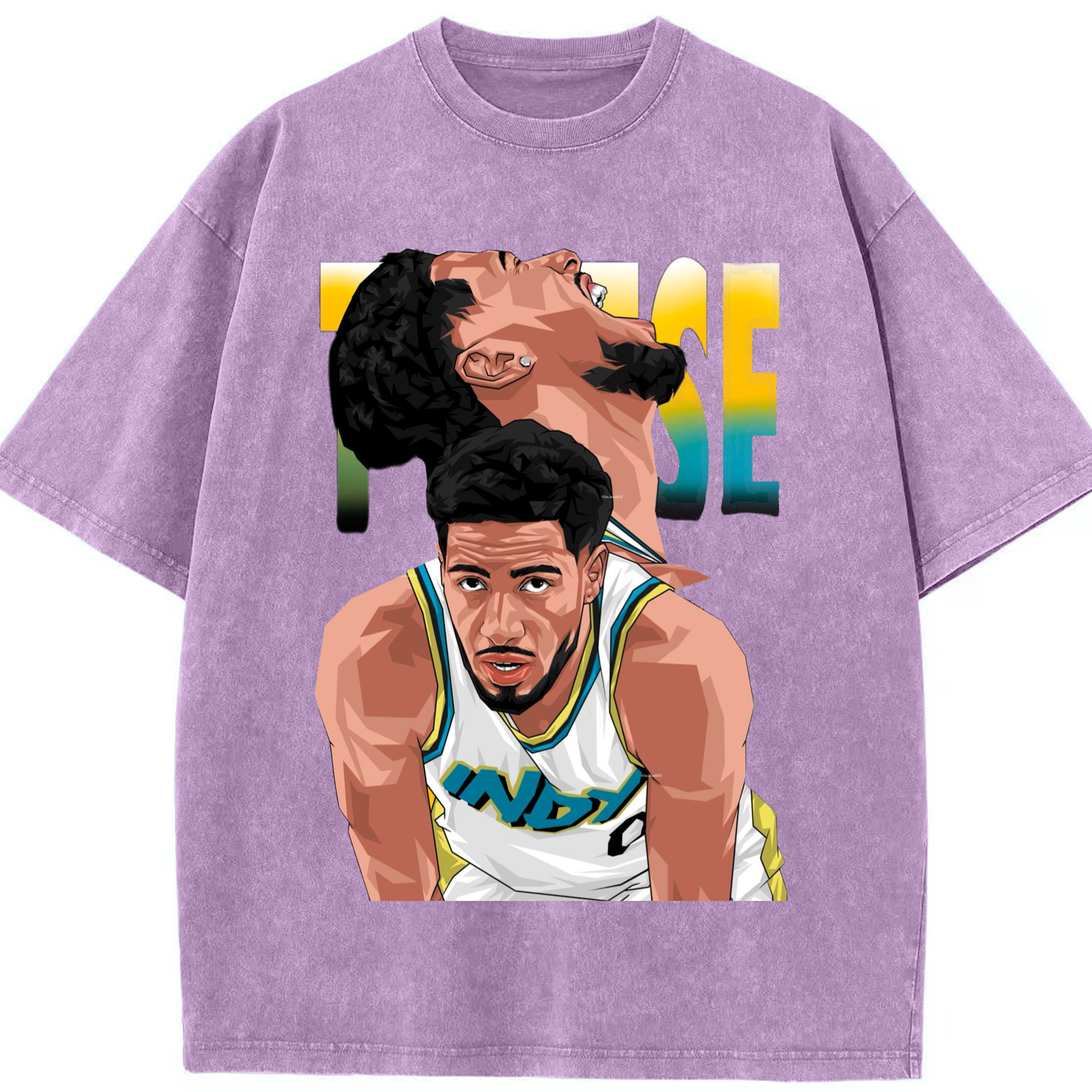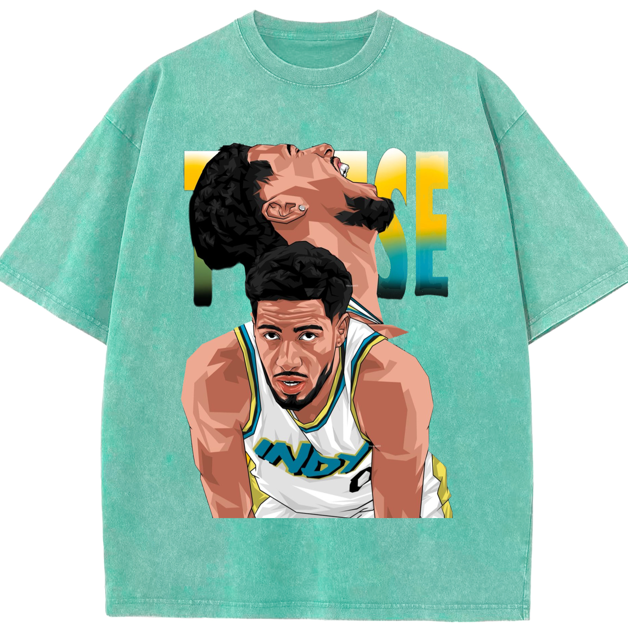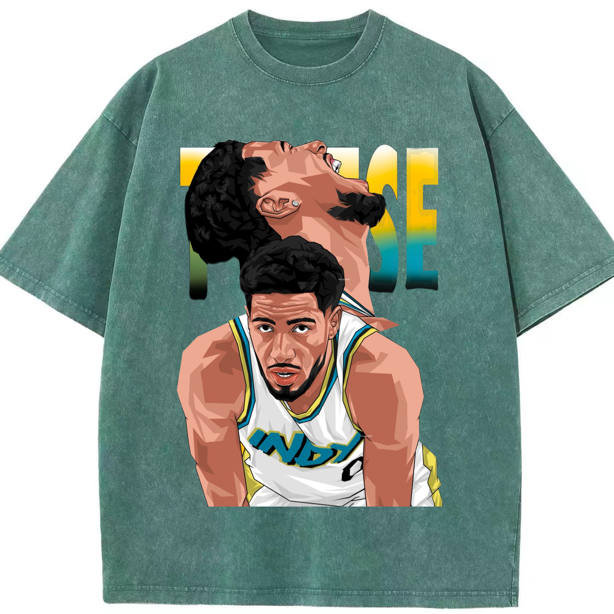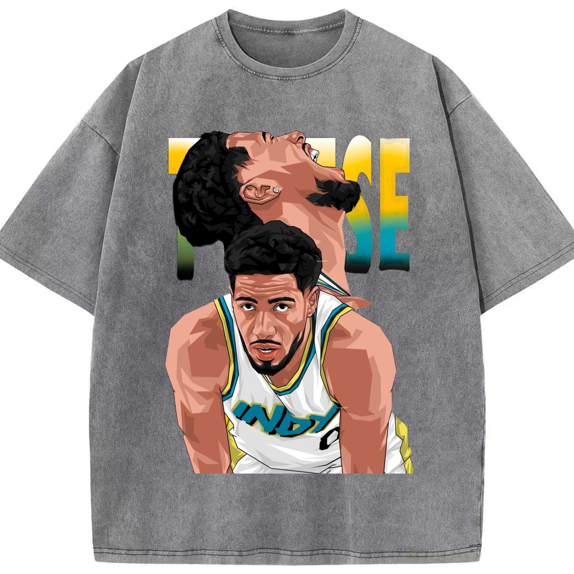 Tyrese Haliburton Cartoon Shirt - Washed Vintage Look 230g Cotton Oversized T-Shirt With Front Heat Transfer Print – Soft, Lightweight, Stylish Fit – Comfortable Casual Wear For Sports & Everyday Use
