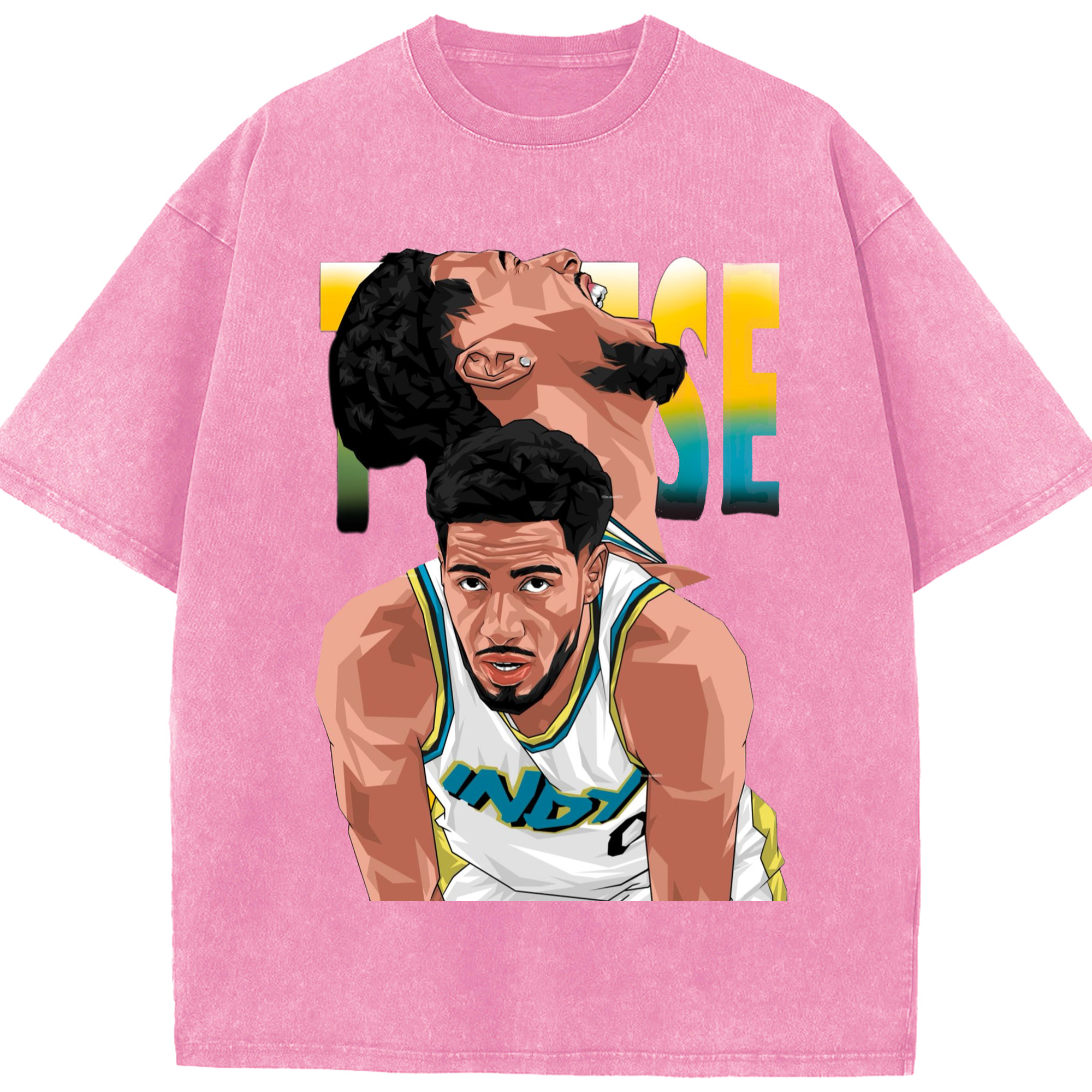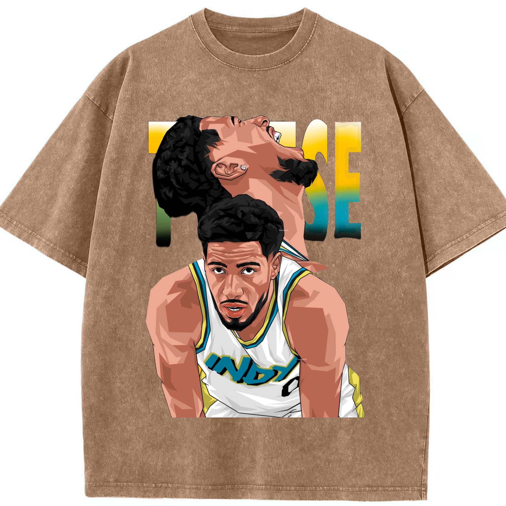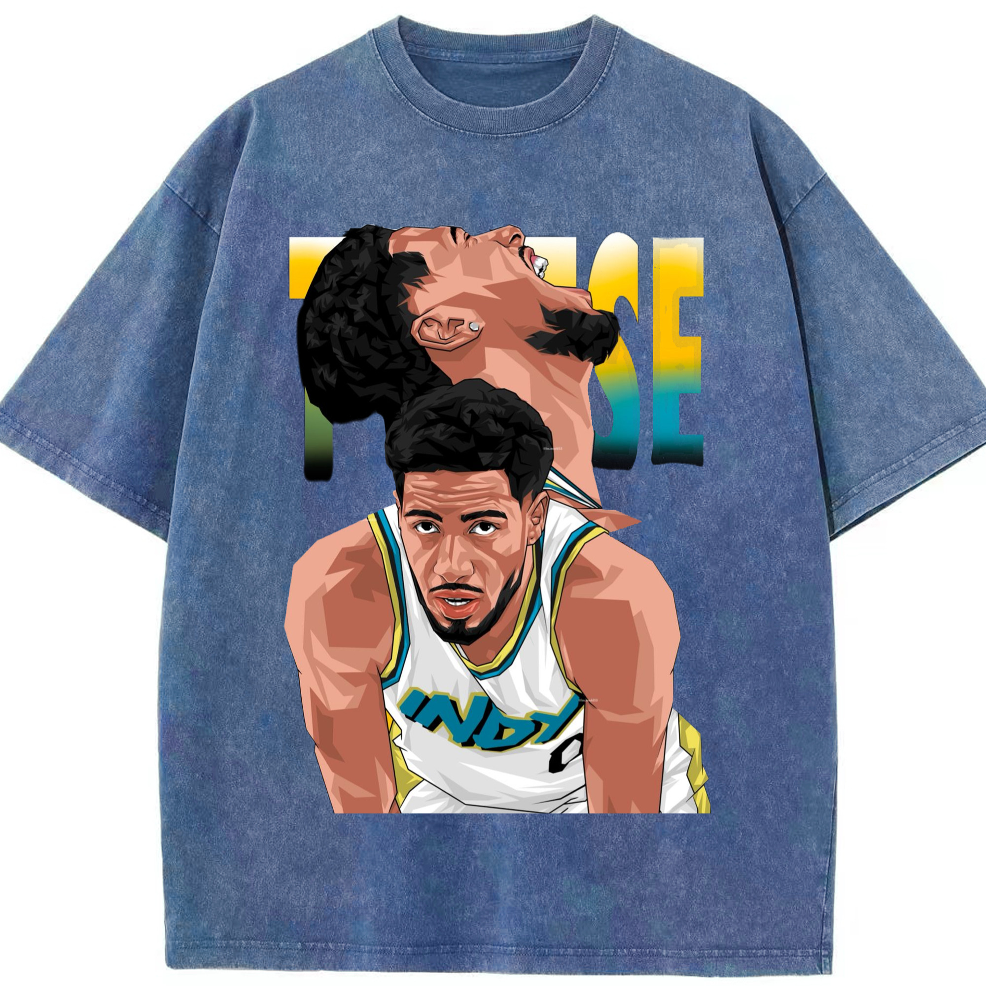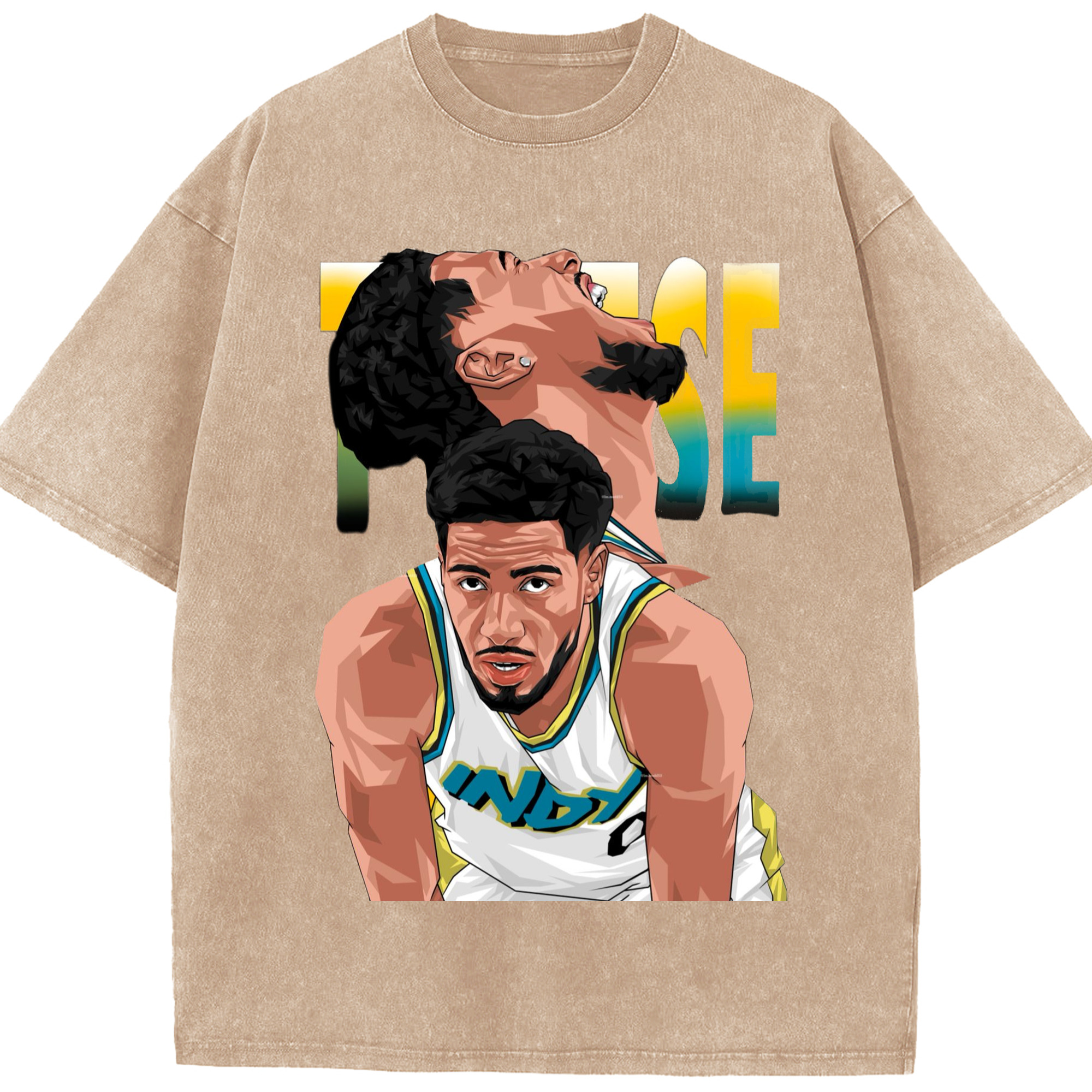Tyrese Haliburton Cartoon Shirt - Washed Vintage Look 230g Cotton Oversized T-Shirt With Front Heat Transfer Print – Soft, Lightweight, Stylish Fit – Comfortable Casual Wear For Sports & Everyday Use