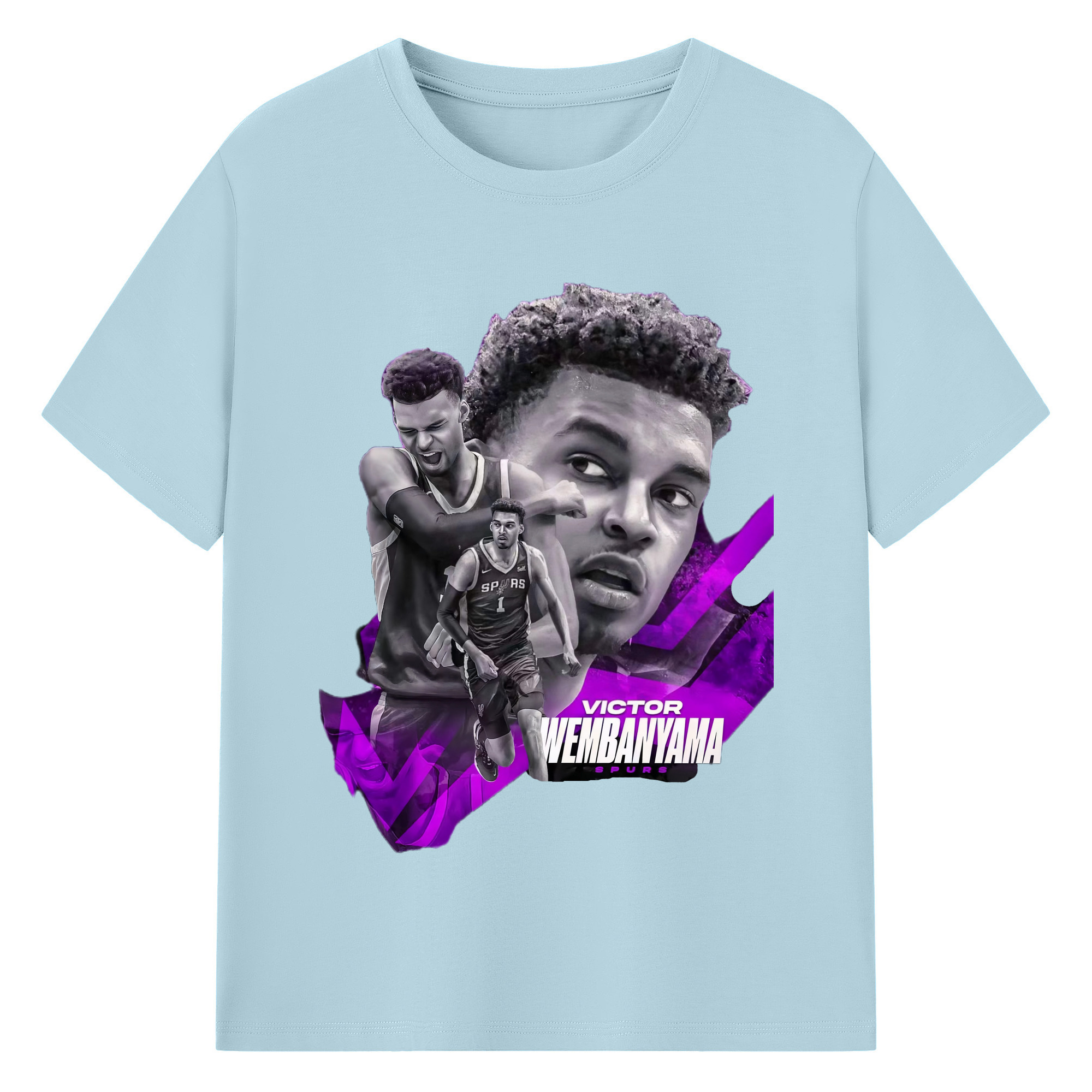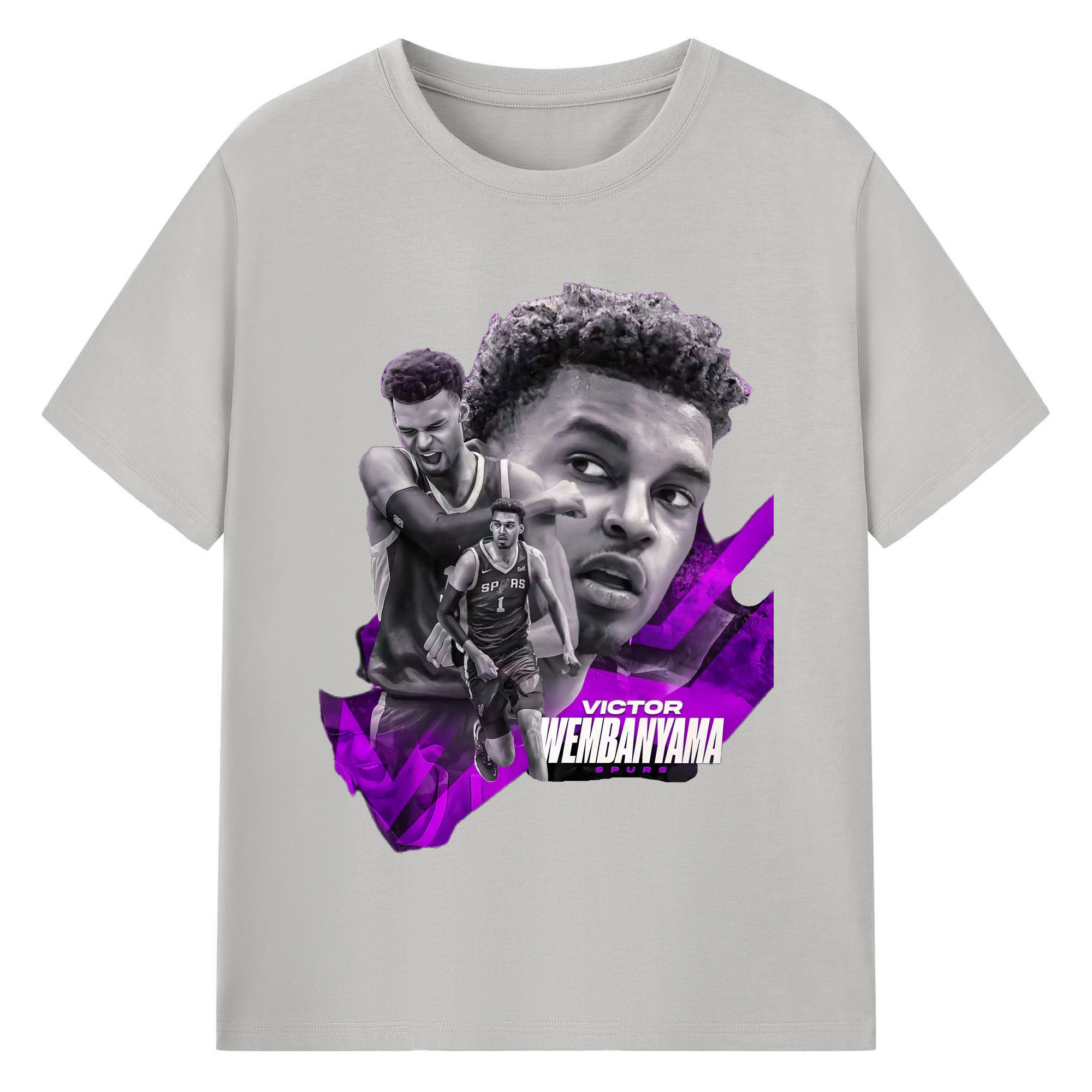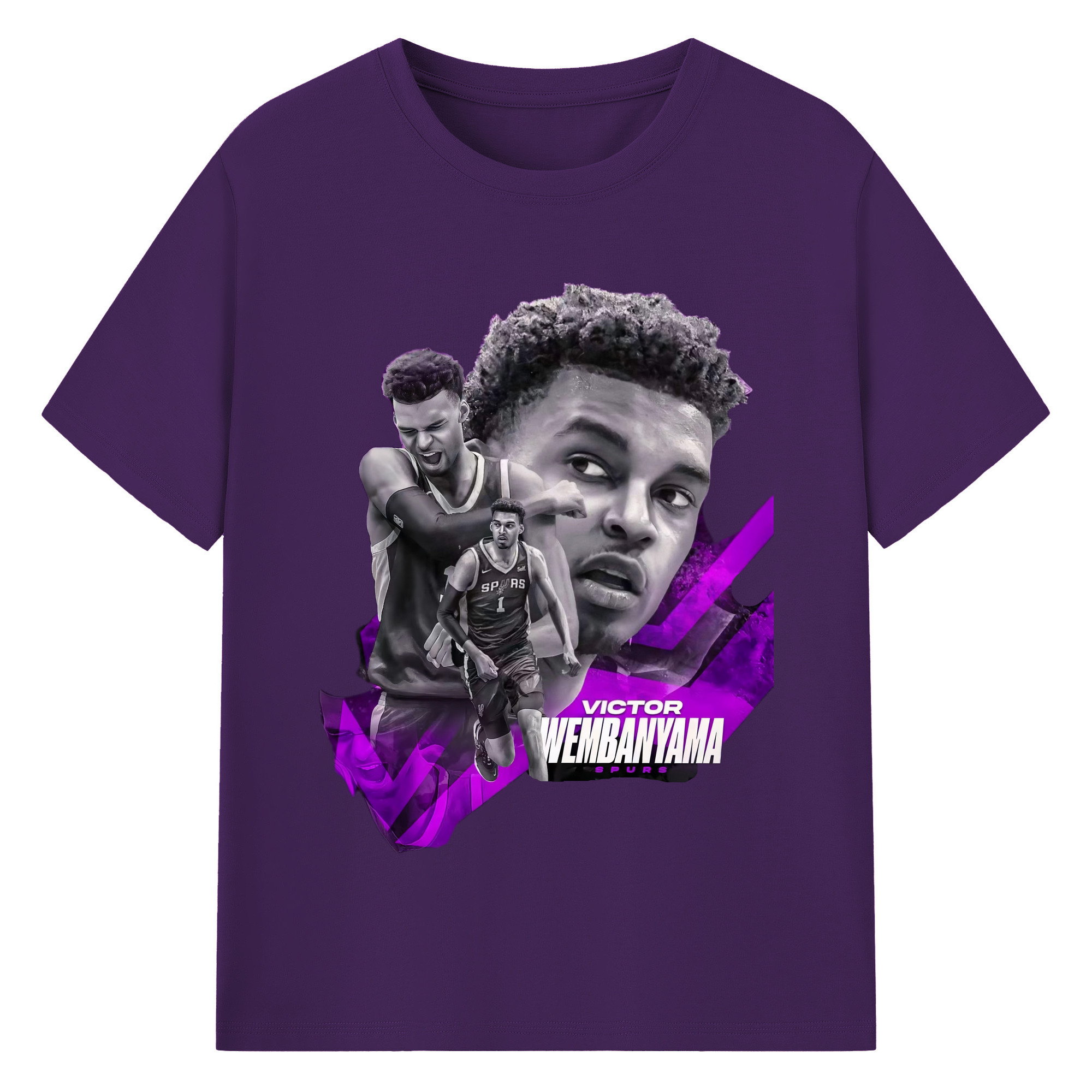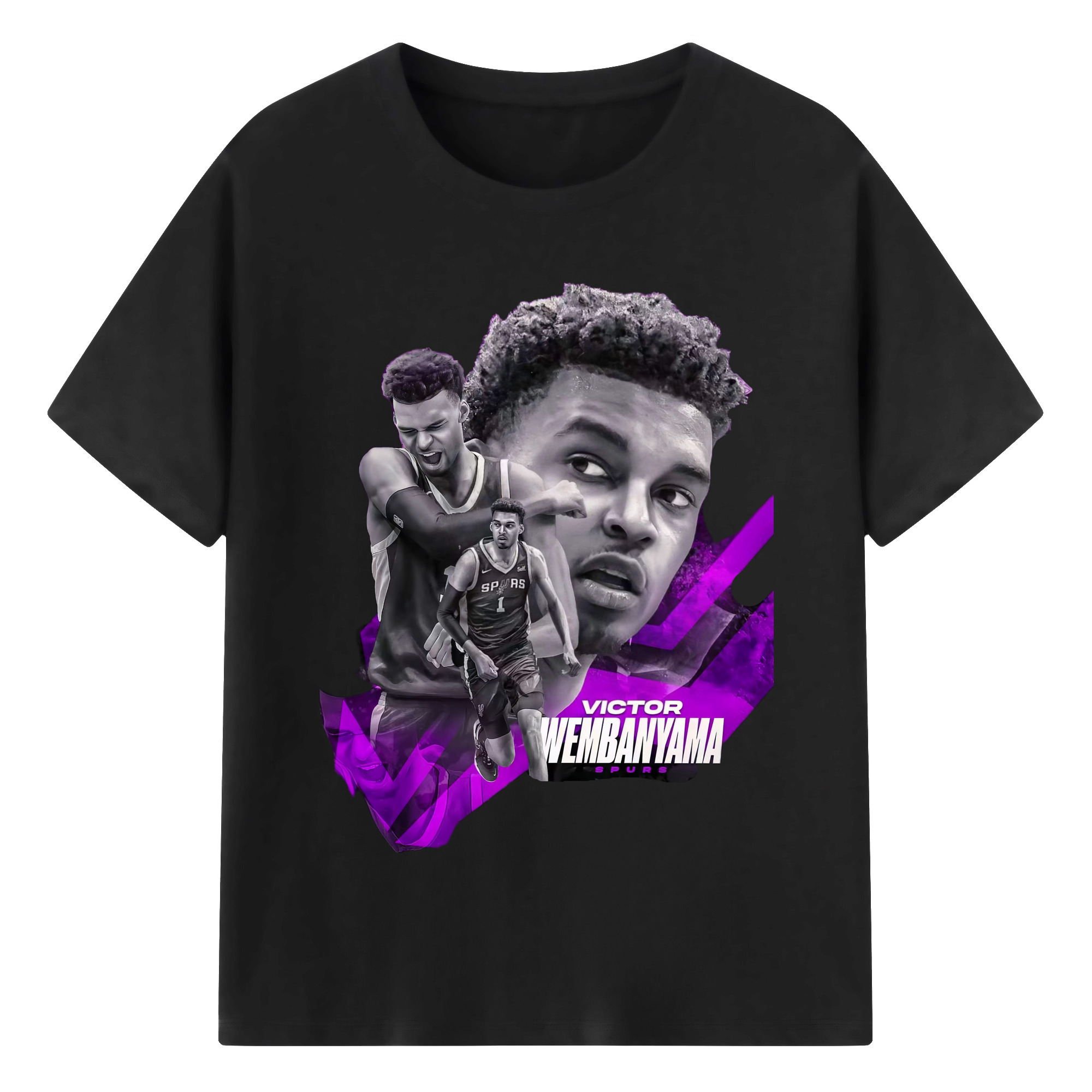 Victor Wembanyama #1 Black purple graphic Shirt - 180g Cotton T-Shirt With Front Heat Transfer Print – Soft, Lightweight, Fitted Design – Comfortable Casual Wear For Sports & Everyday Use
