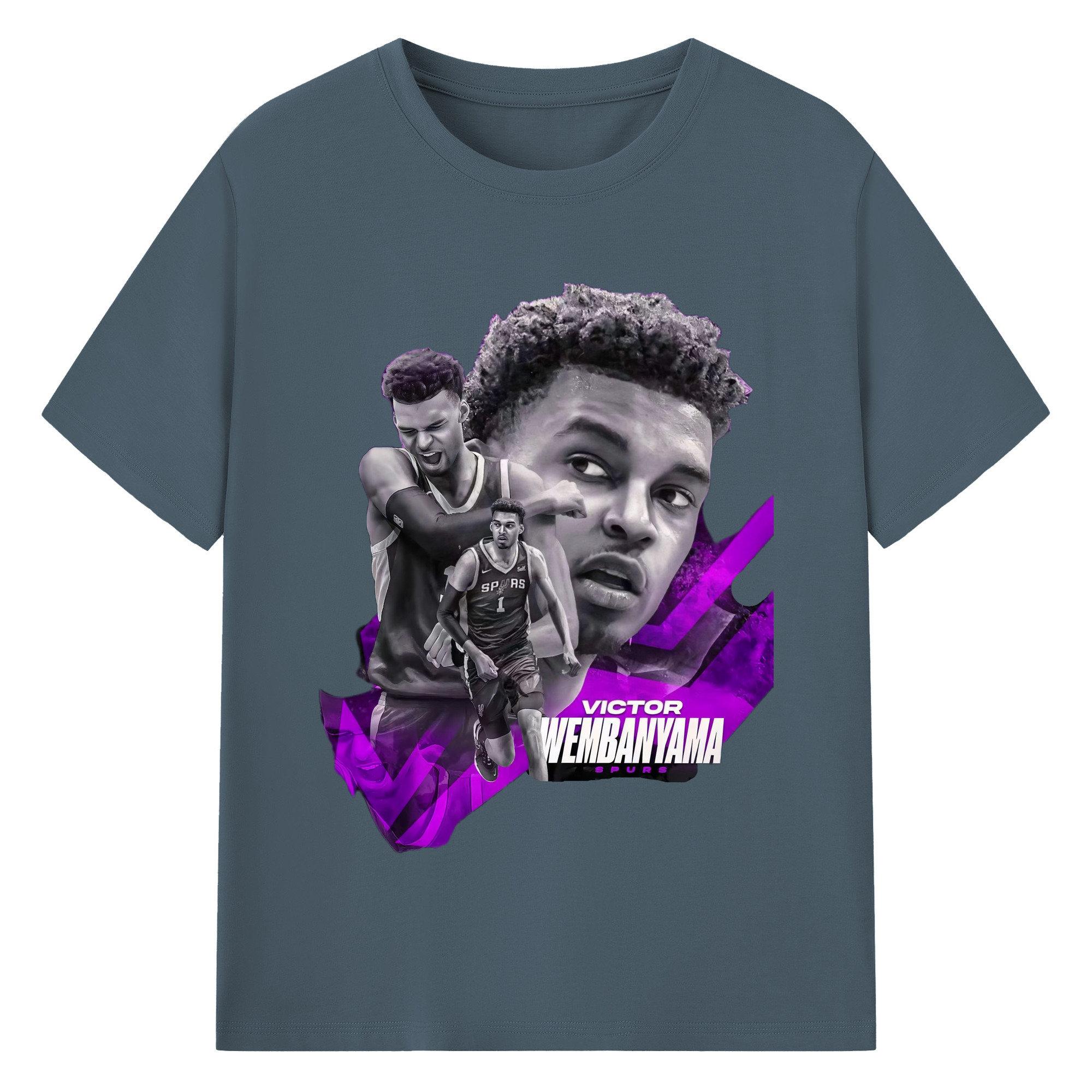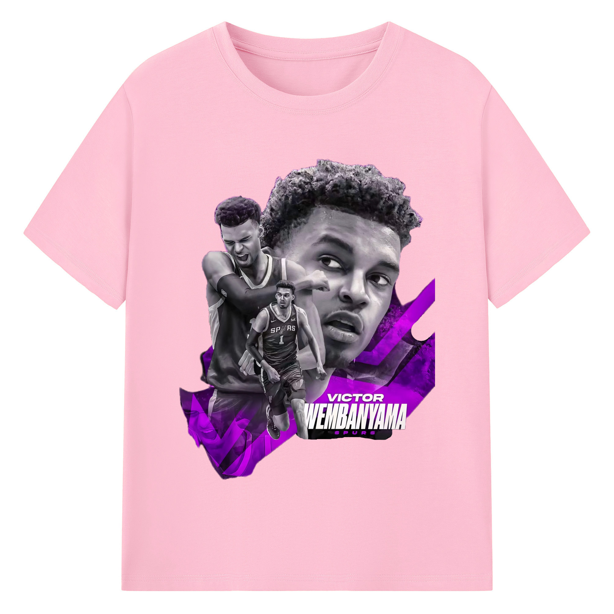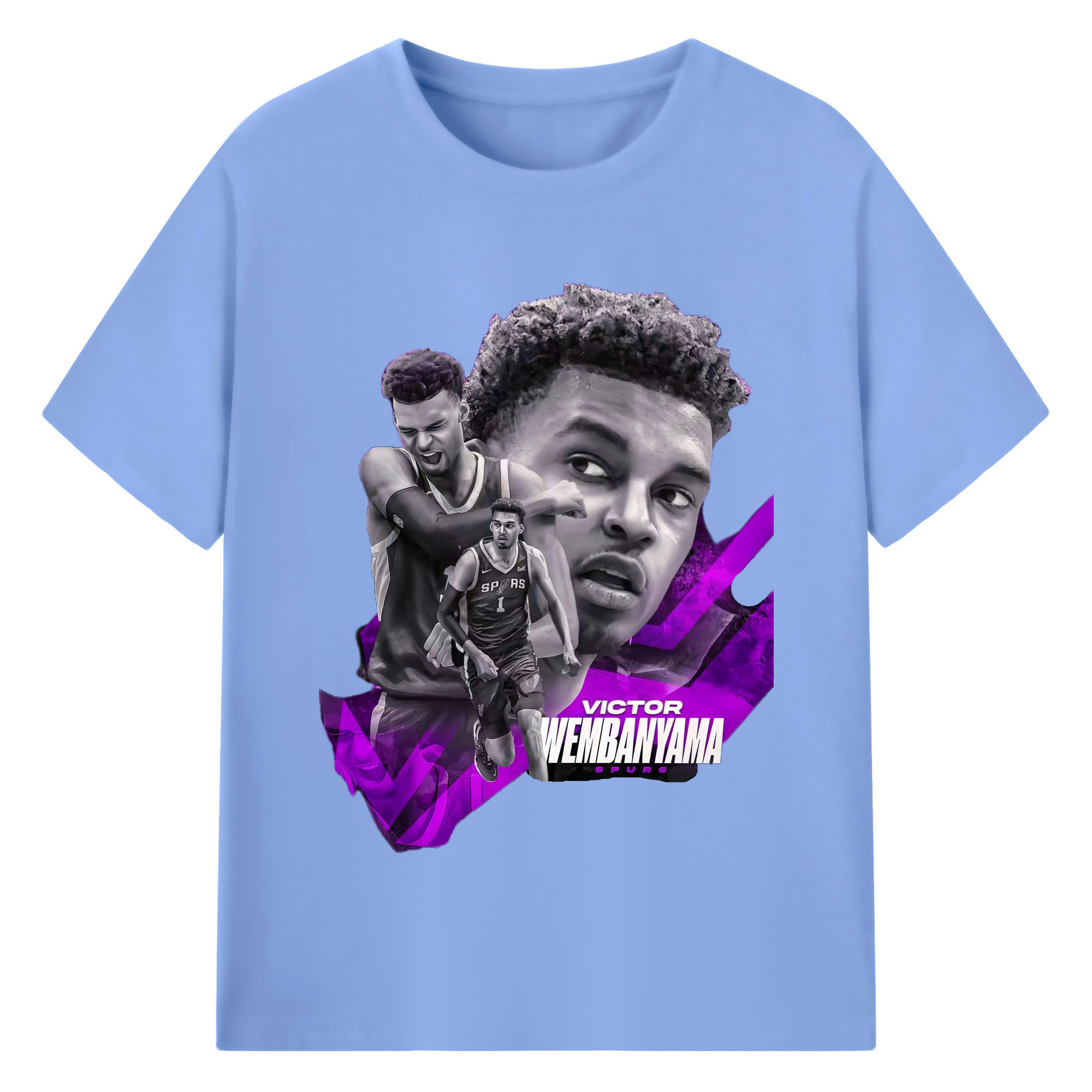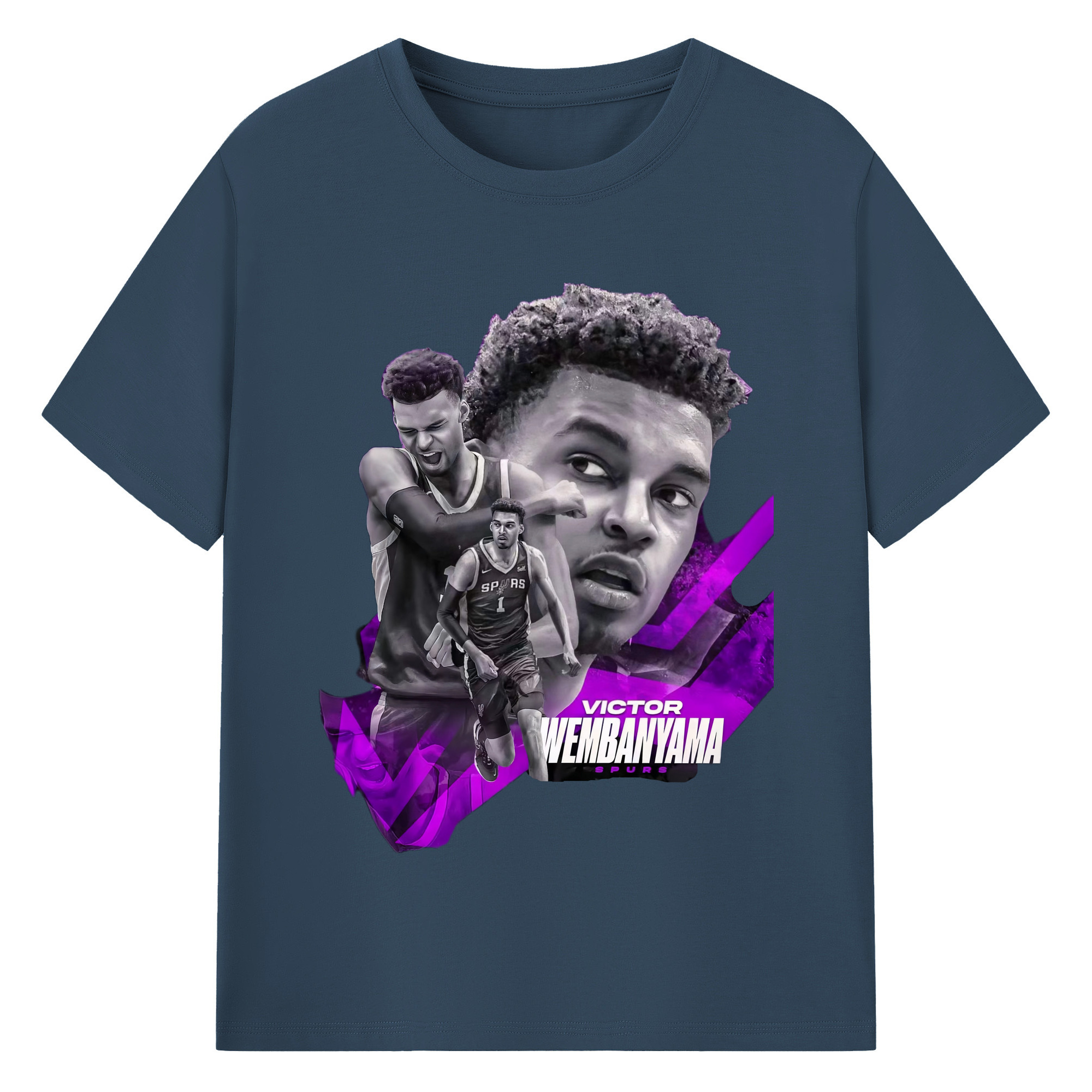 Victor Wembanyama #1 Black purple graphic Shirt - 180g Cotton T-Shirt With Front Heat Transfer Print – Soft, Lightweight, Fitted Design – Comfortable Casual Wear For Sports & Everyday Use