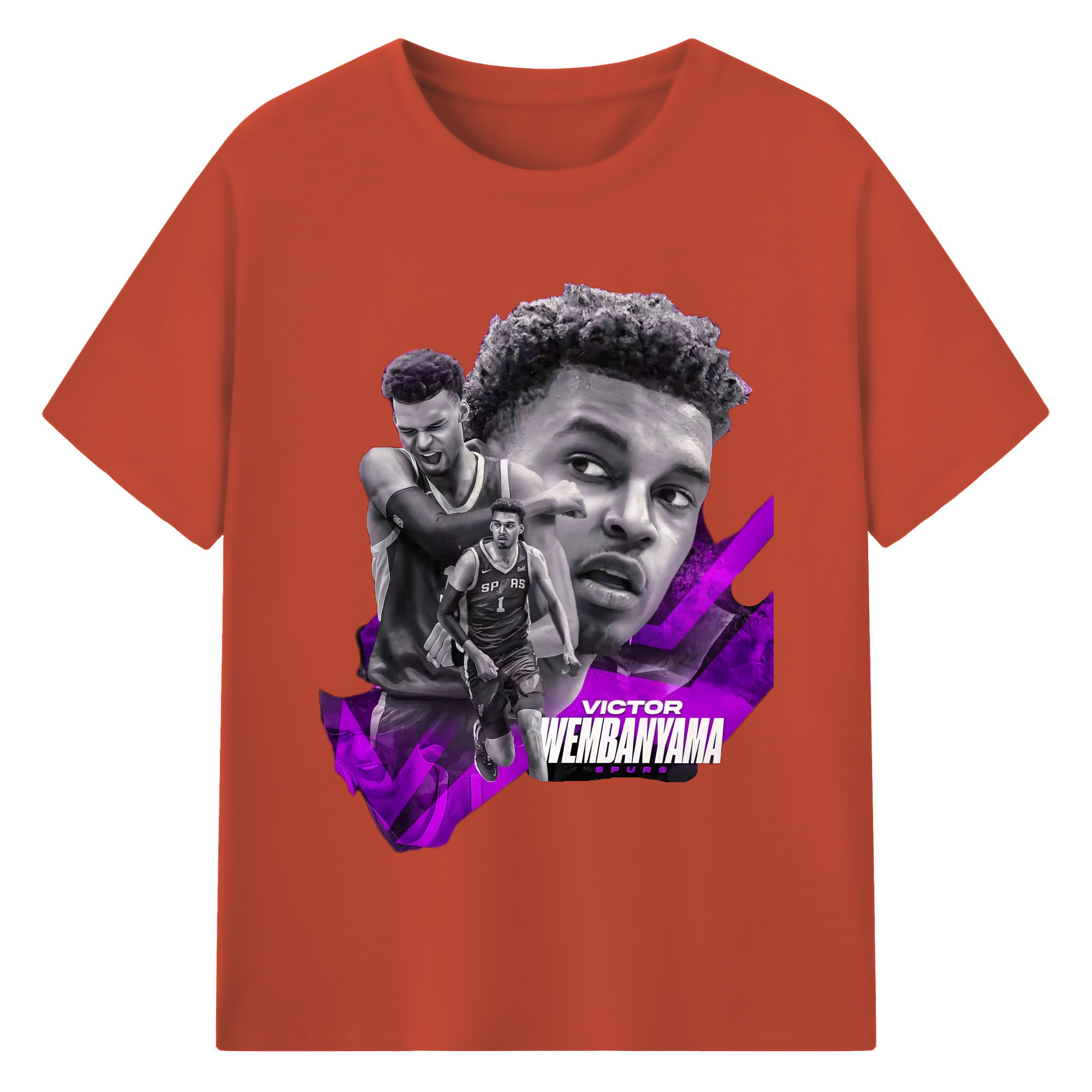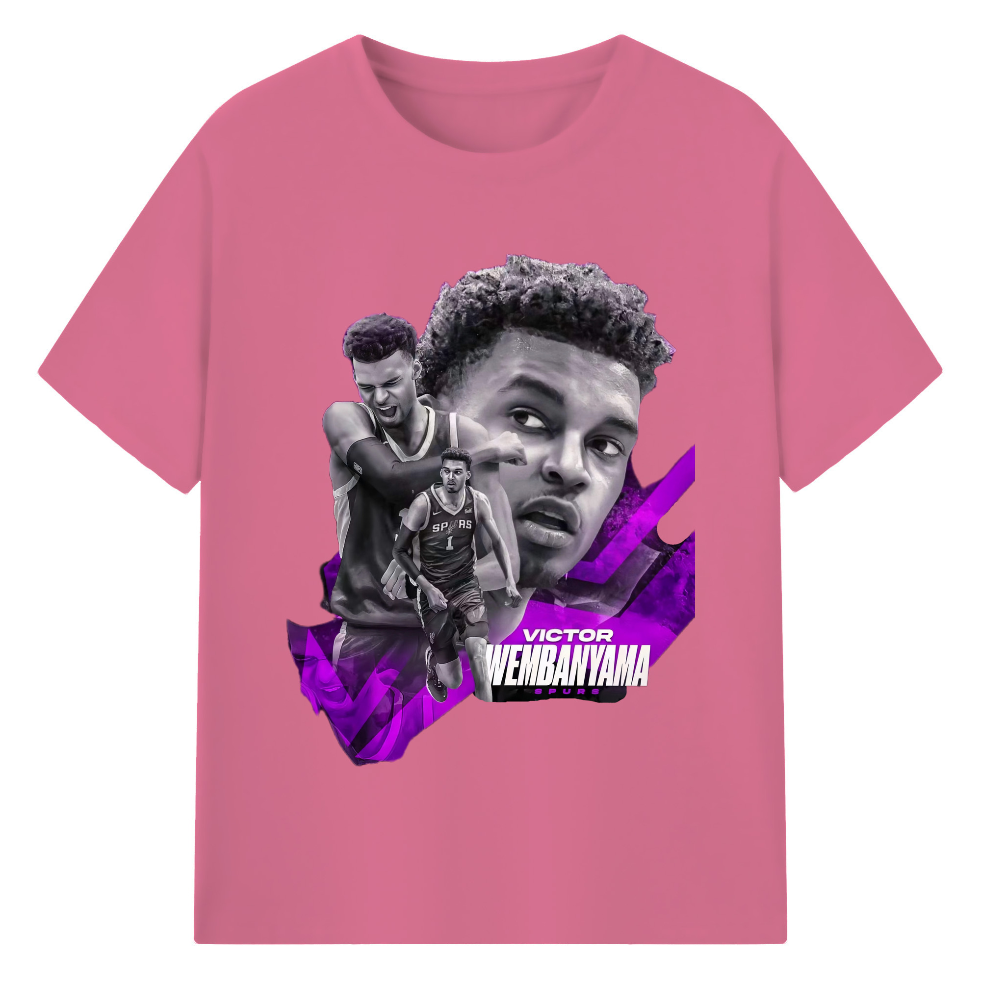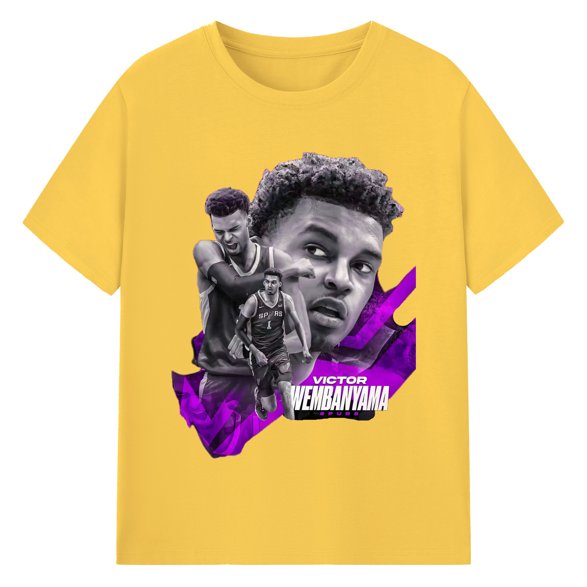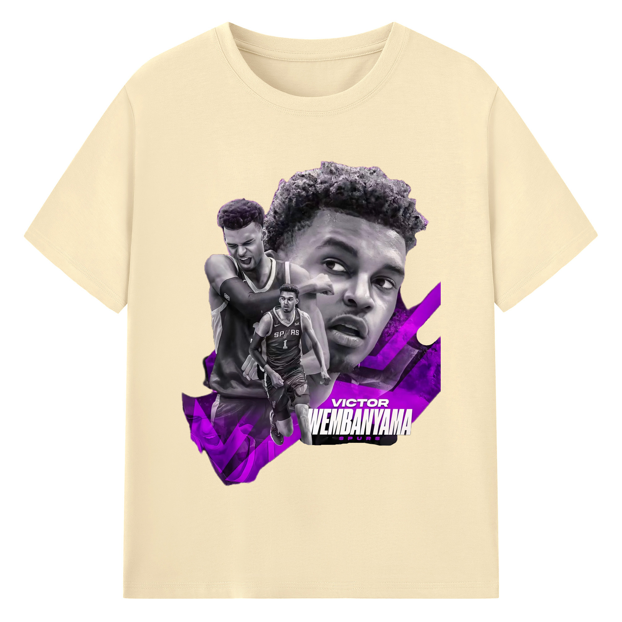 Victor Wembanyama #1 Black purple graphic Shirt - 180g Cotton T-Shirt With Front Heat Transfer Print – Soft, Lightweight, Fitted Design – Comfortable Casual Wear For Sports & Everyday Use