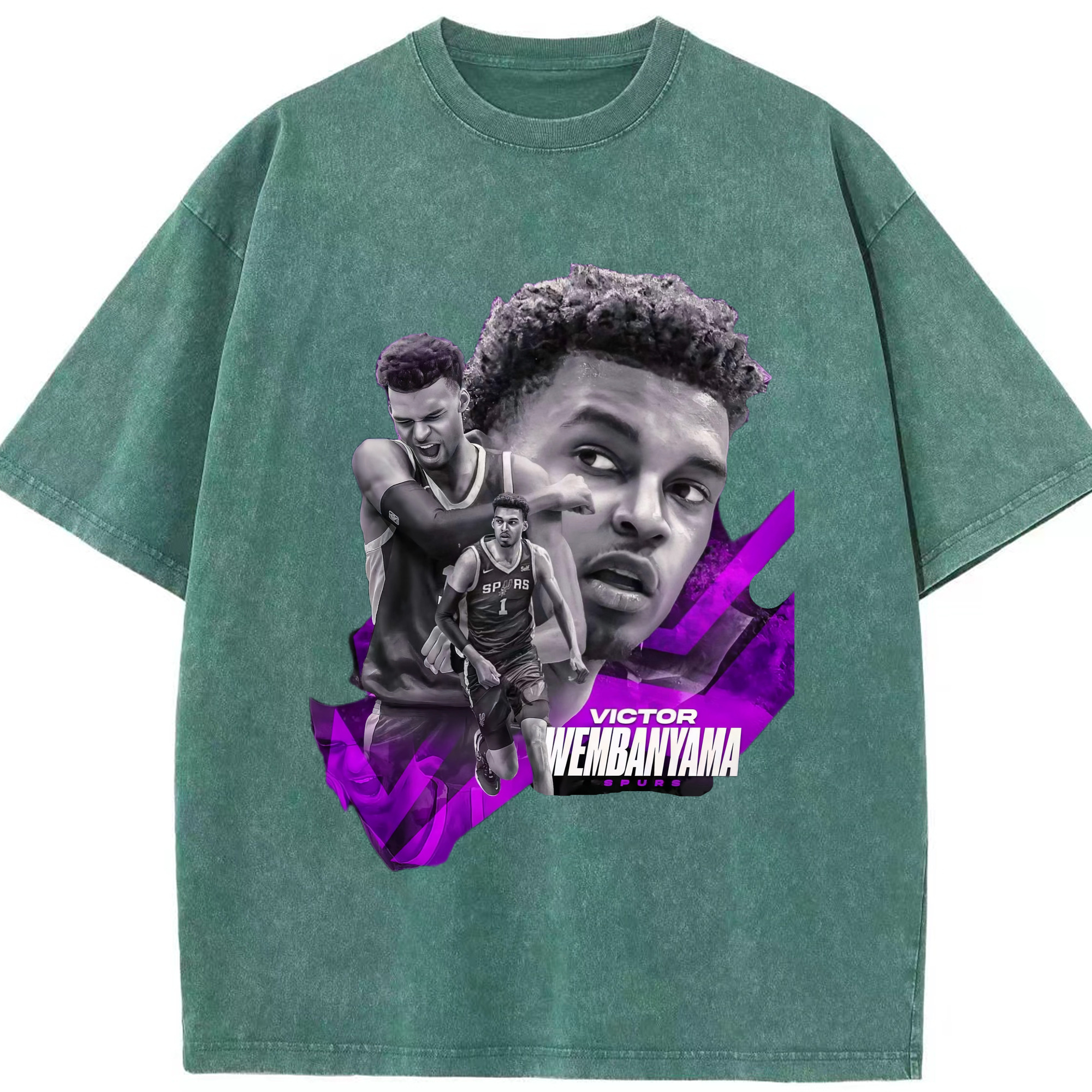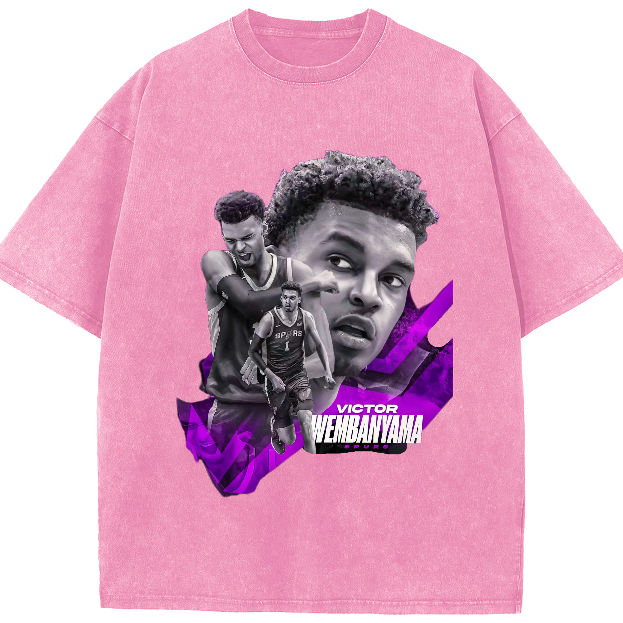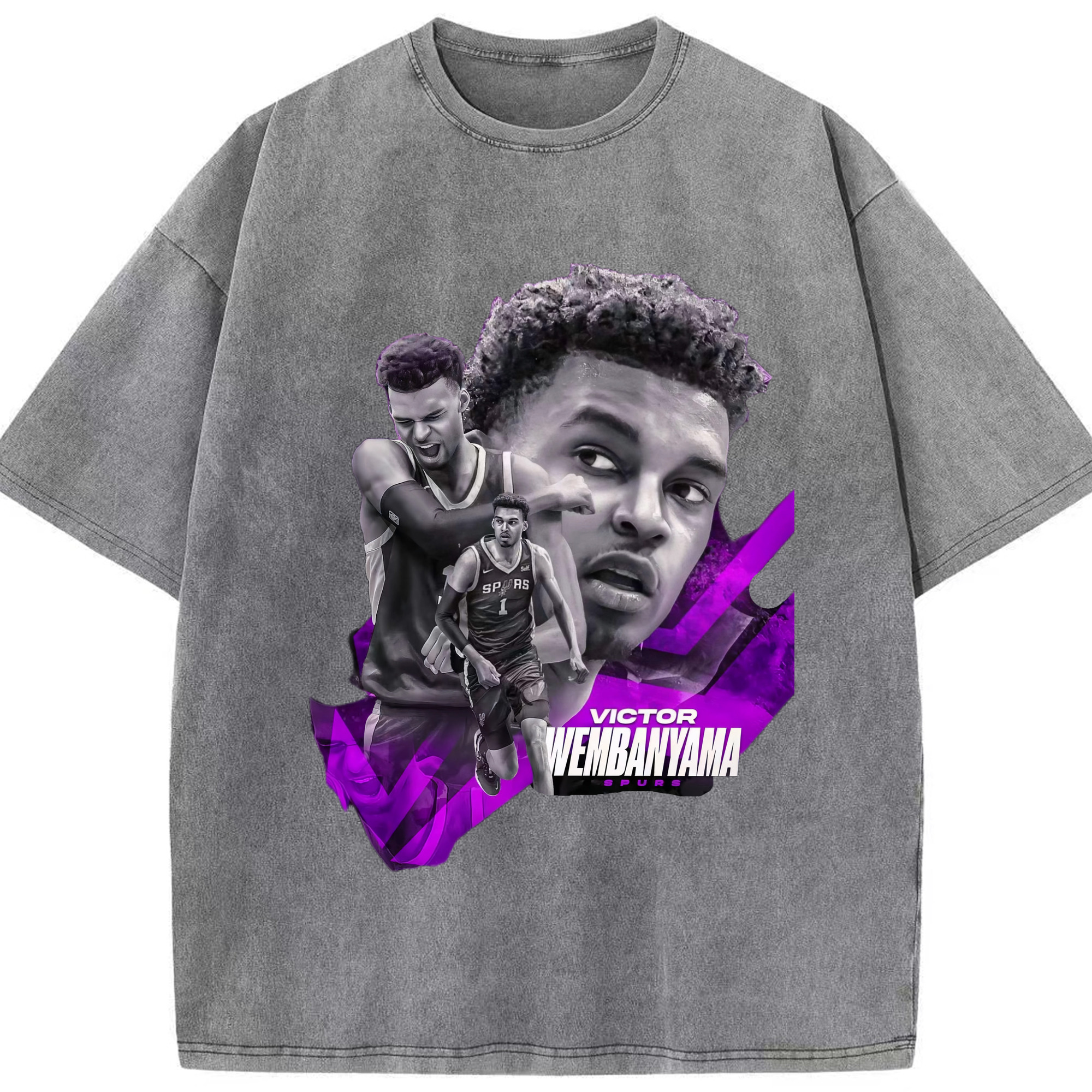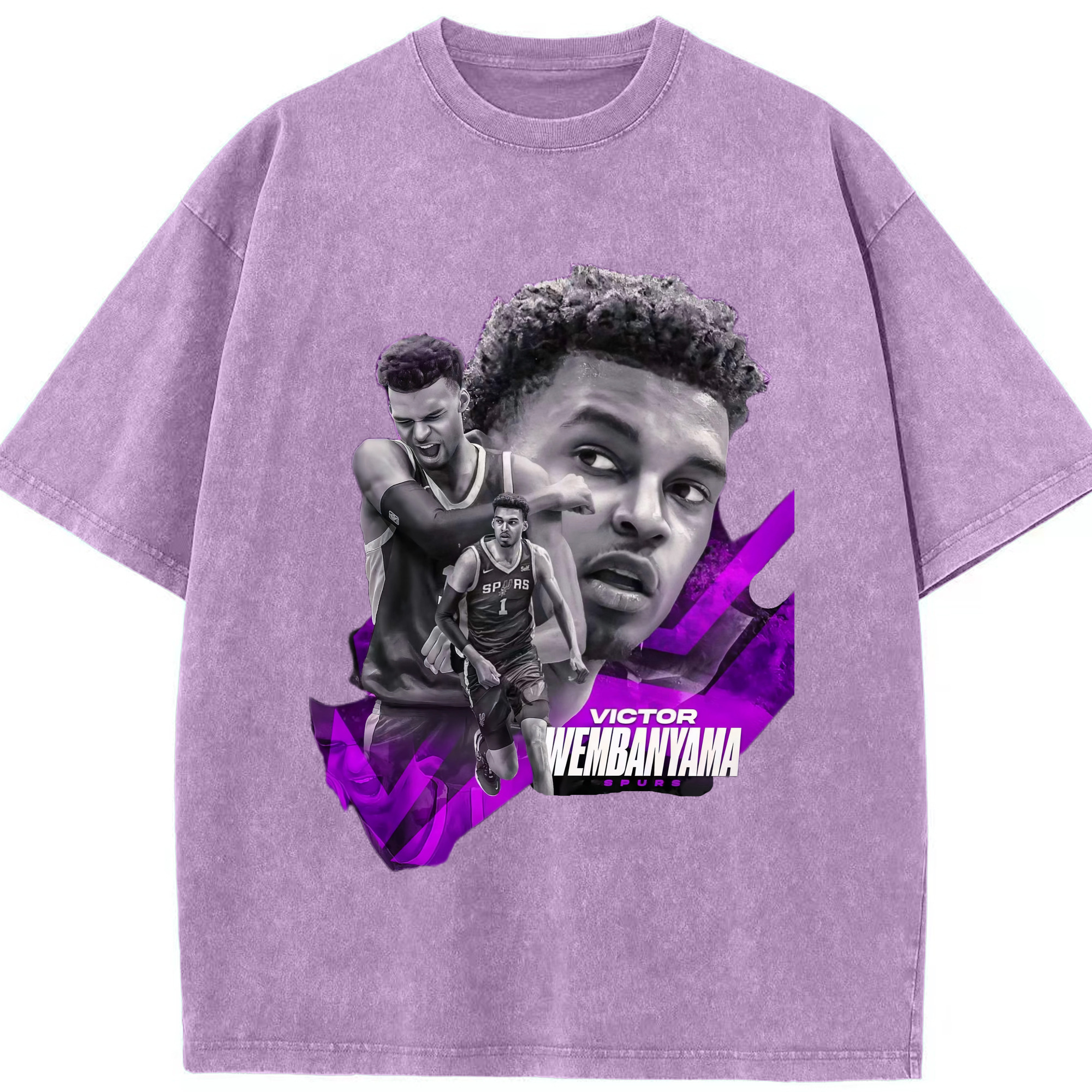 Victor Wembanyama #1 Black purple graphic Shirt - Washed Vintage Look 230g Cotton Oversized T-Shirt With Front Heat Transfer Print – Soft, Lightweight, Stylish Fit – Comfortable Casual Wear For Sports & Everyday Use