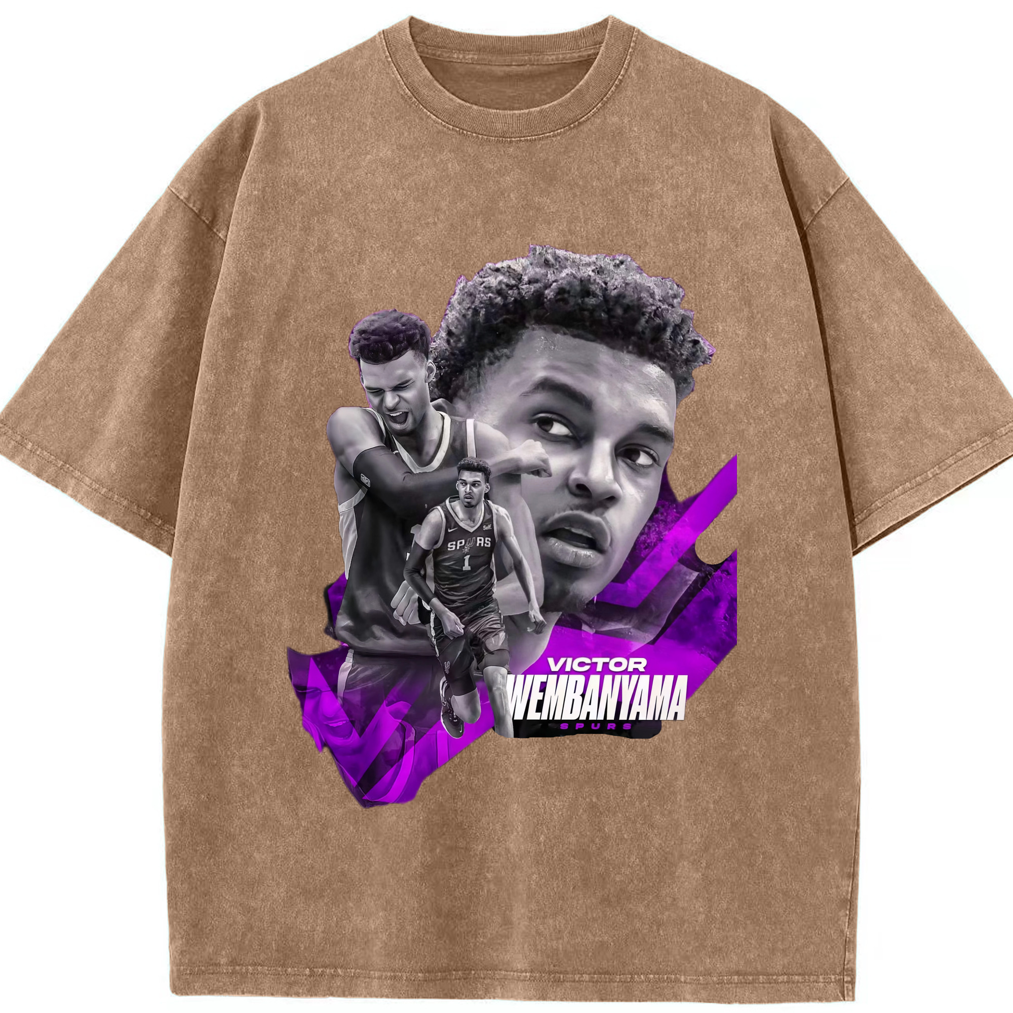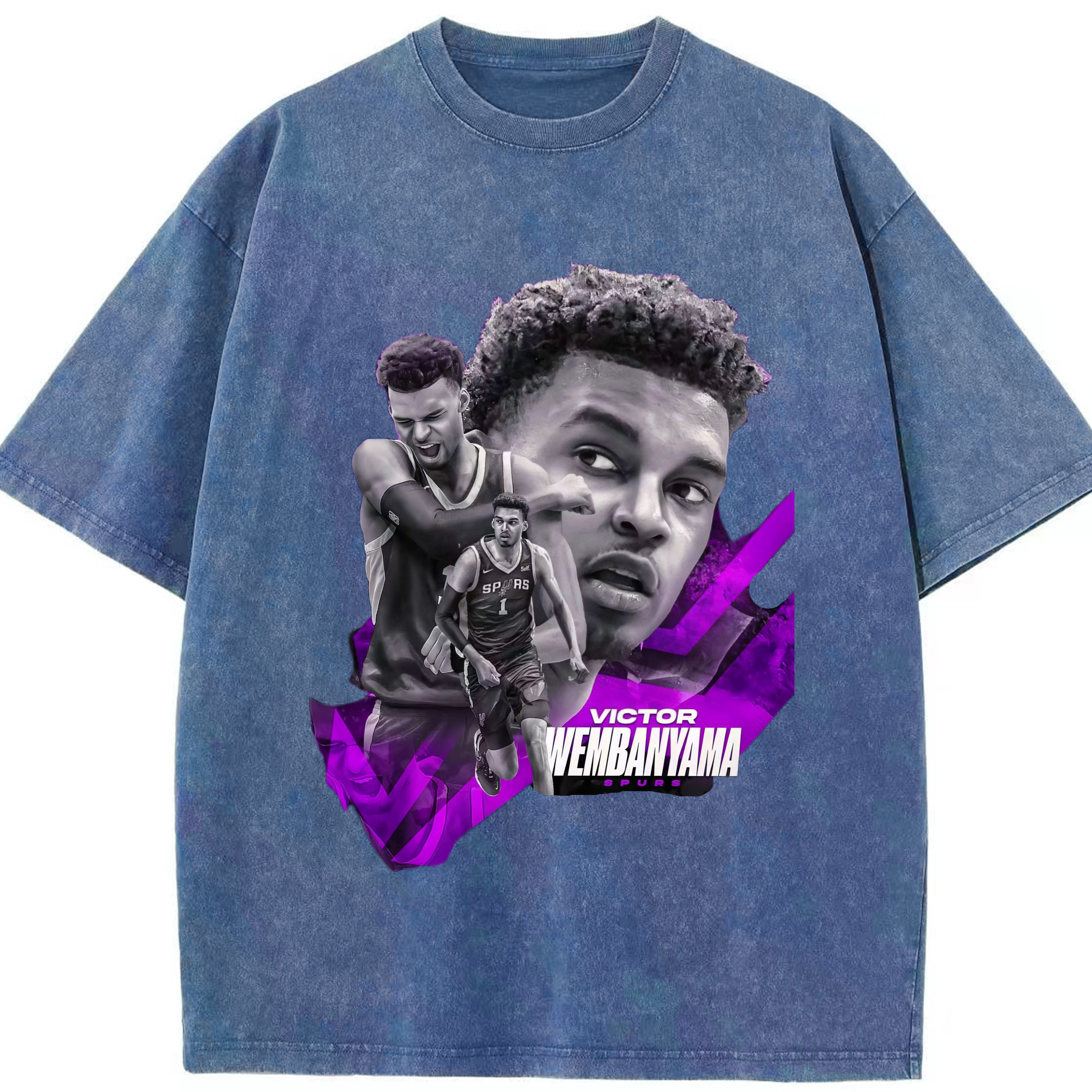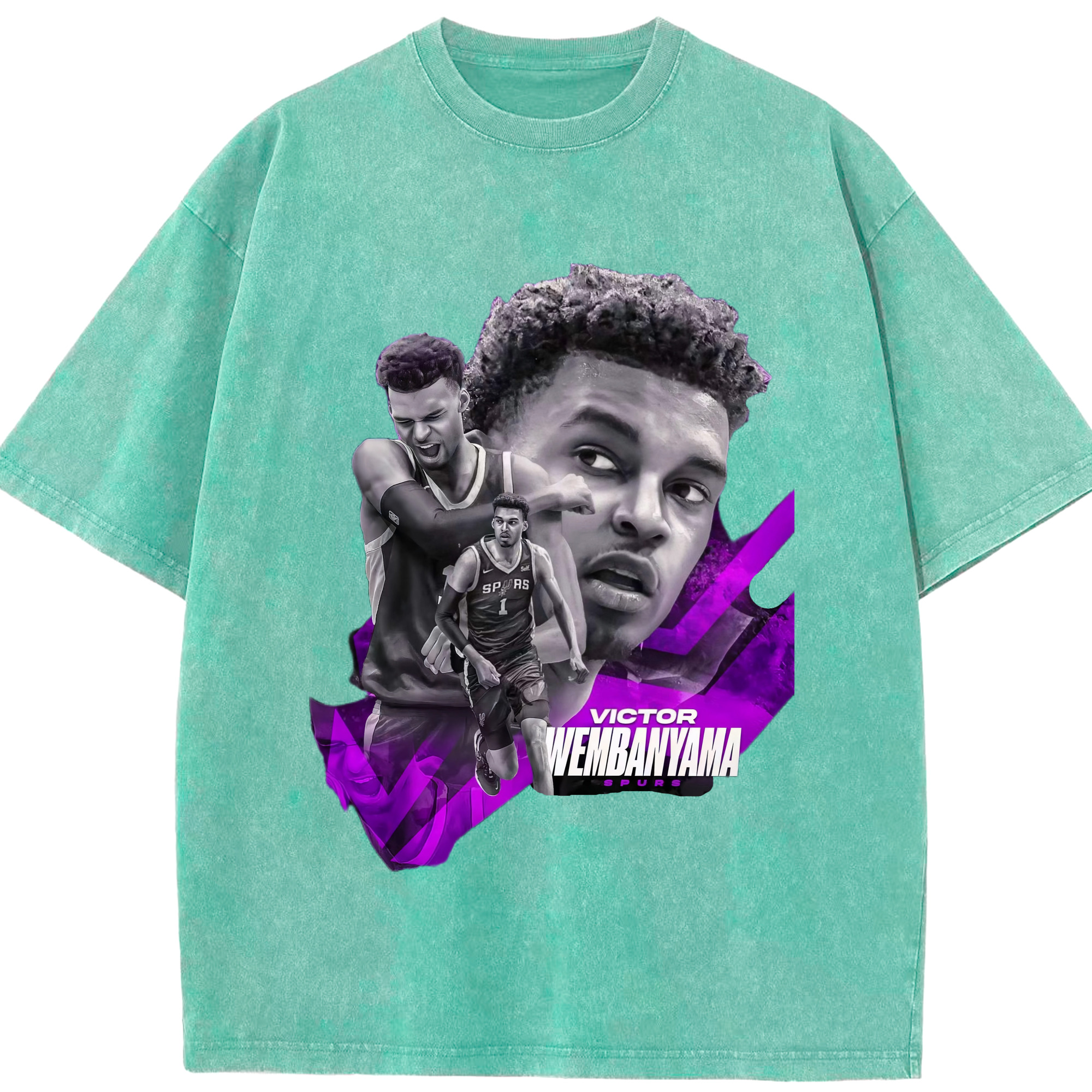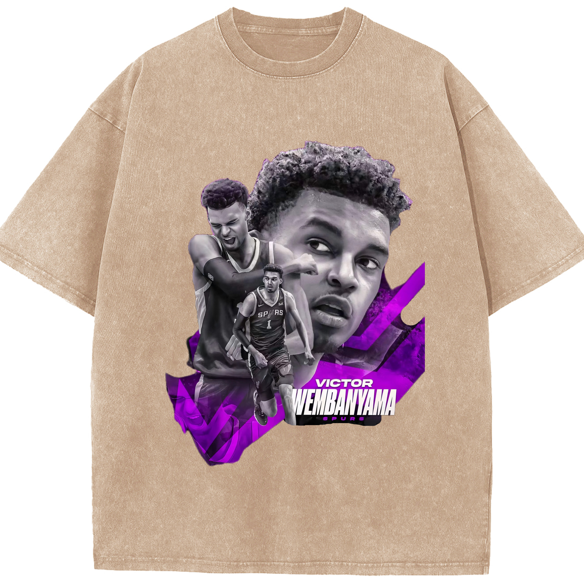 Victor Wembanyama #1 Black purple graphic Shirt - Washed Vintage Look 230g Cotton Oversized T-Shirt With Front Heat Transfer Print – Soft, Lightweight, Stylish Fit – Comfortable Casual Wear For Sports & Everyday Use