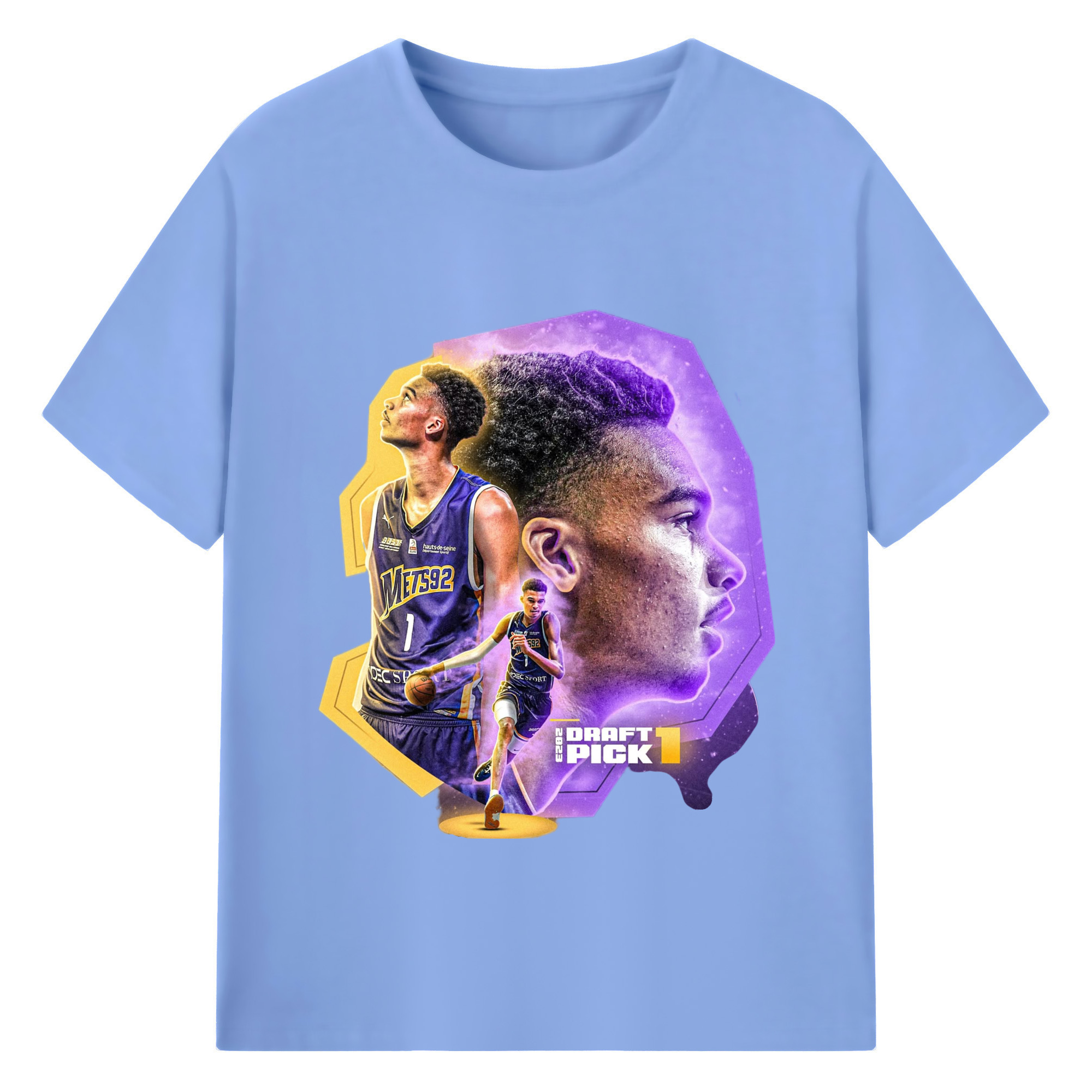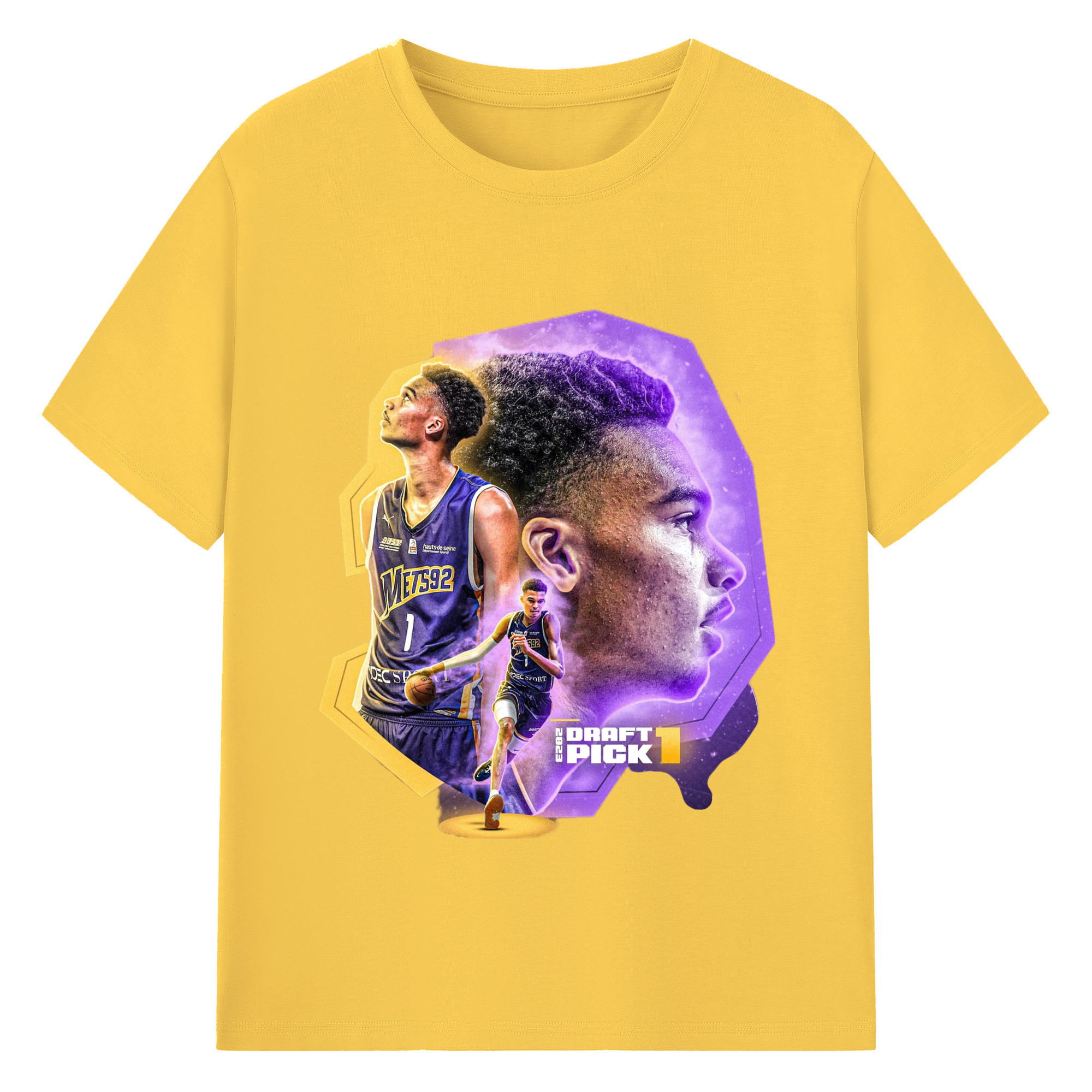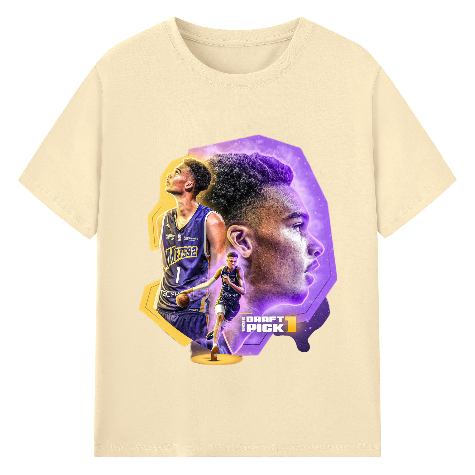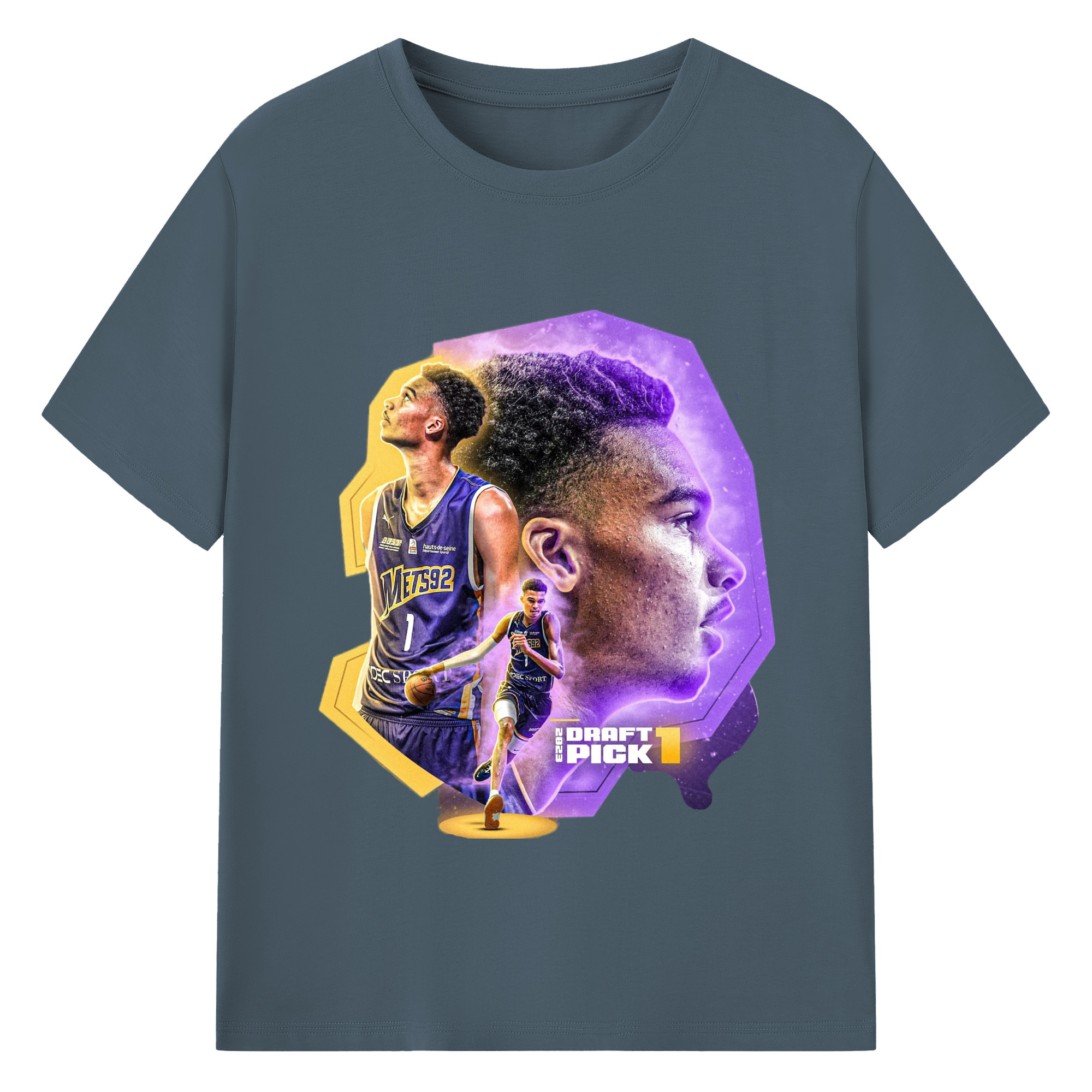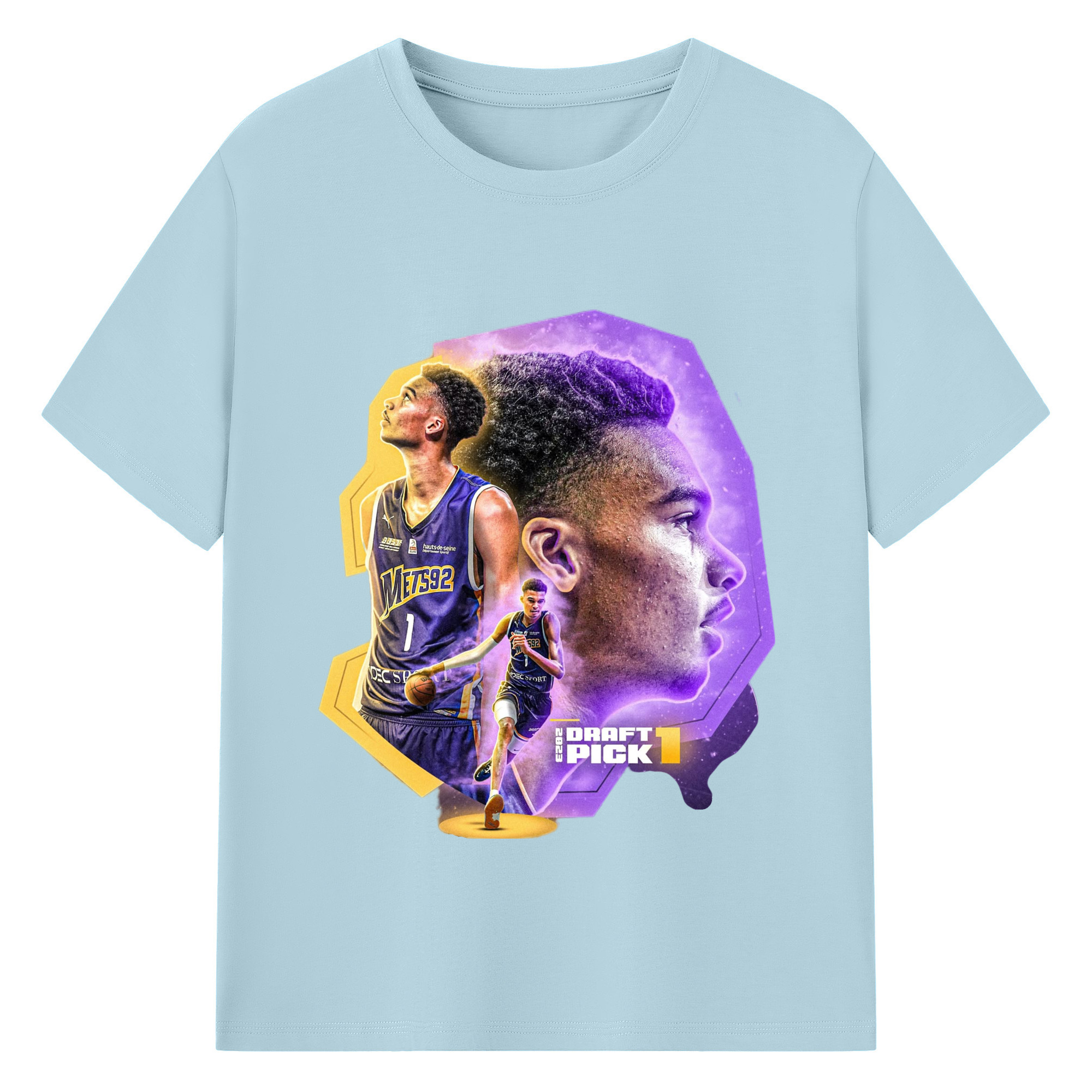 Victor Wembanyama Colored painting collage graphic T-shirt - 180g Cotton T-Shirt With Front Heat Transfer Print – Soft, Lightweight, Fitted Design – Comfortable Casual Wear For Sports & Everyday Use