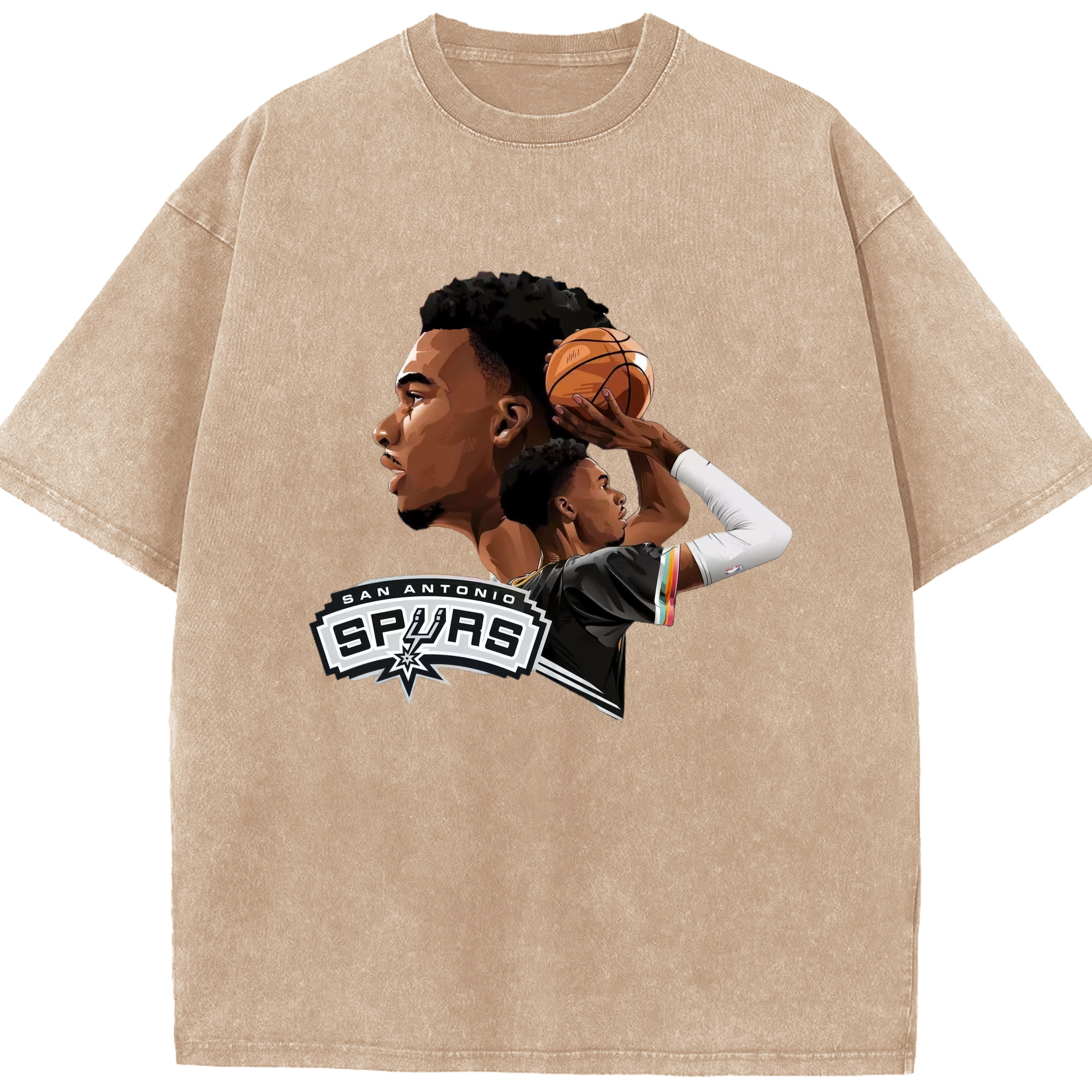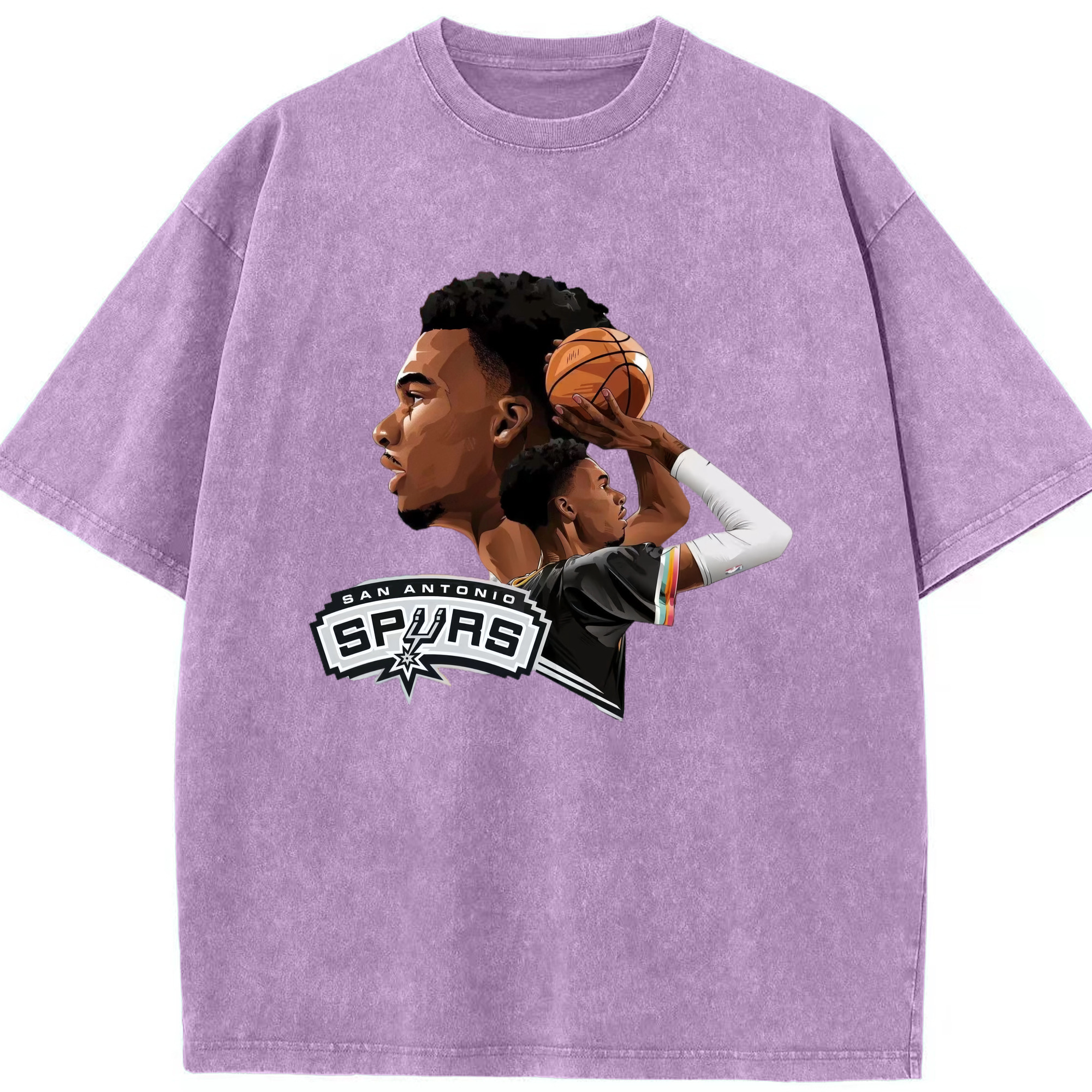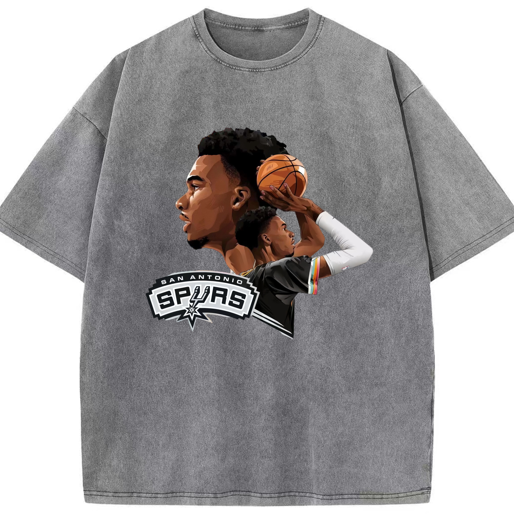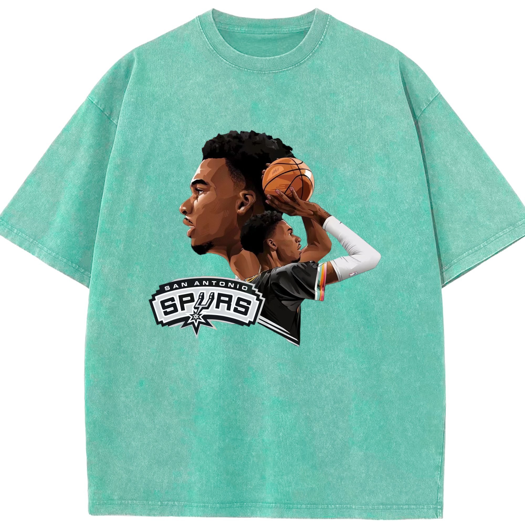 Victor Wembanyama wemby shoot T-shirt - Washed Vintage Look 230g Cotton Oversized T-Shirt With Front Heat Transfer Print – Soft, Lightweight, Stylish Fit – Comfortable Casual Wear For Sports & Everyday Use