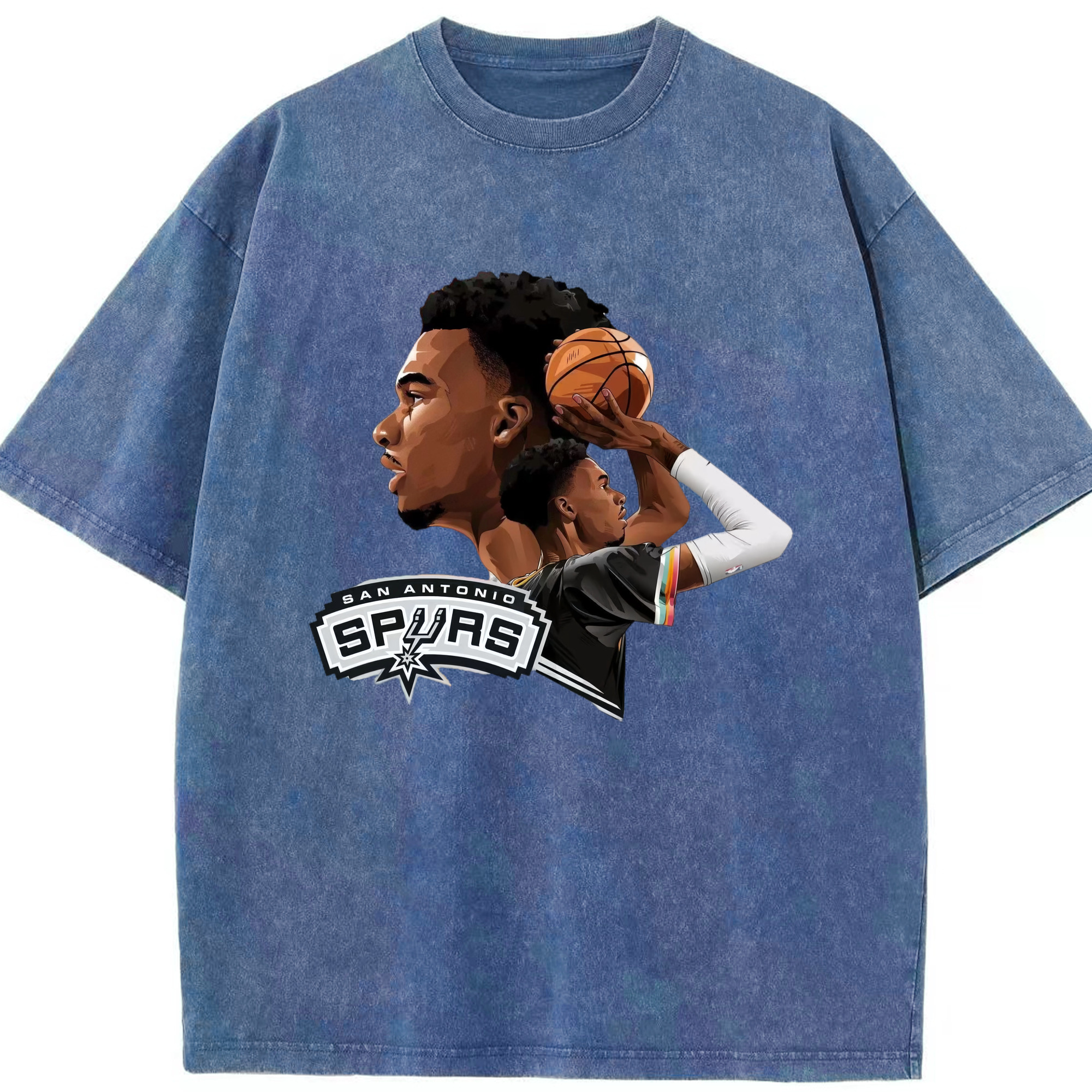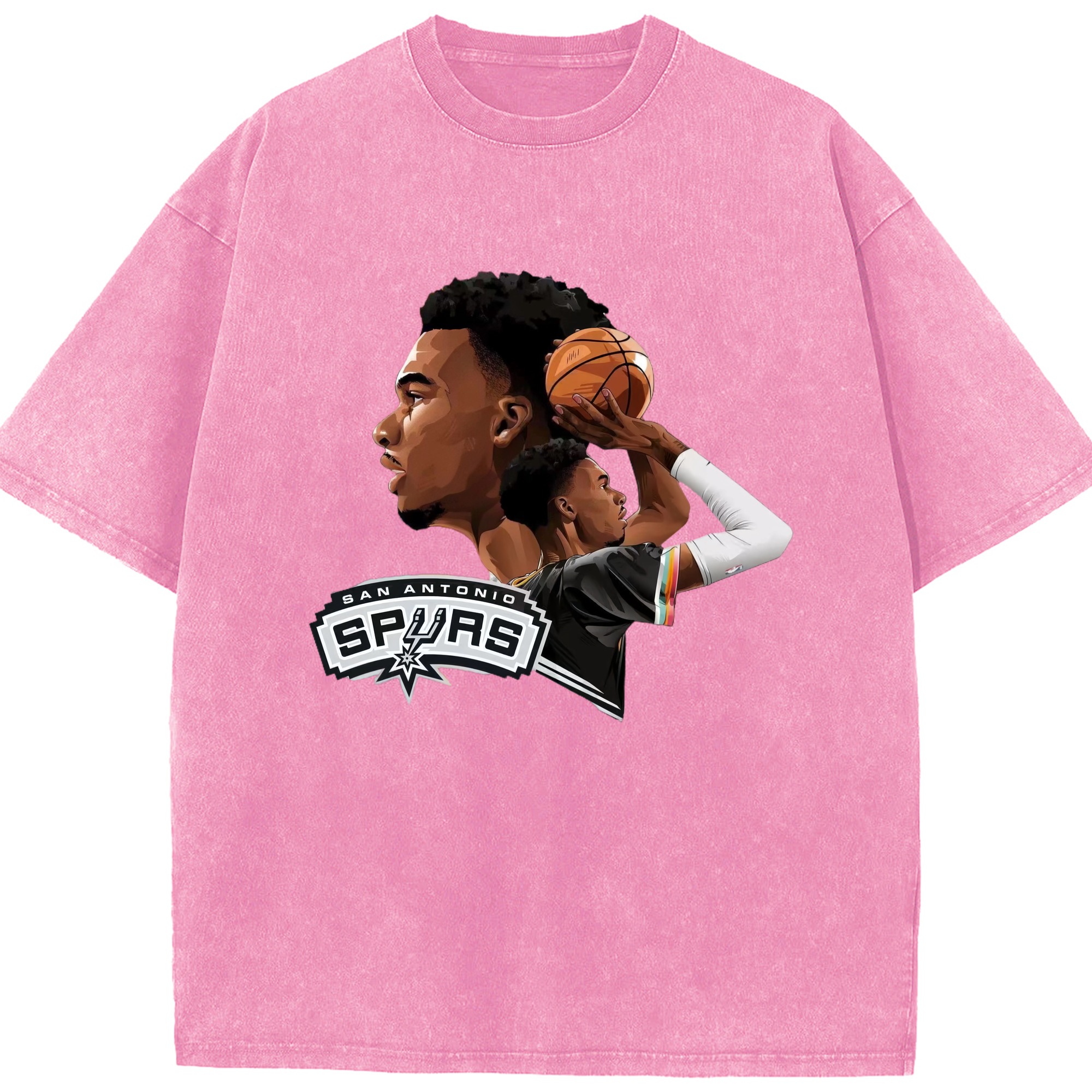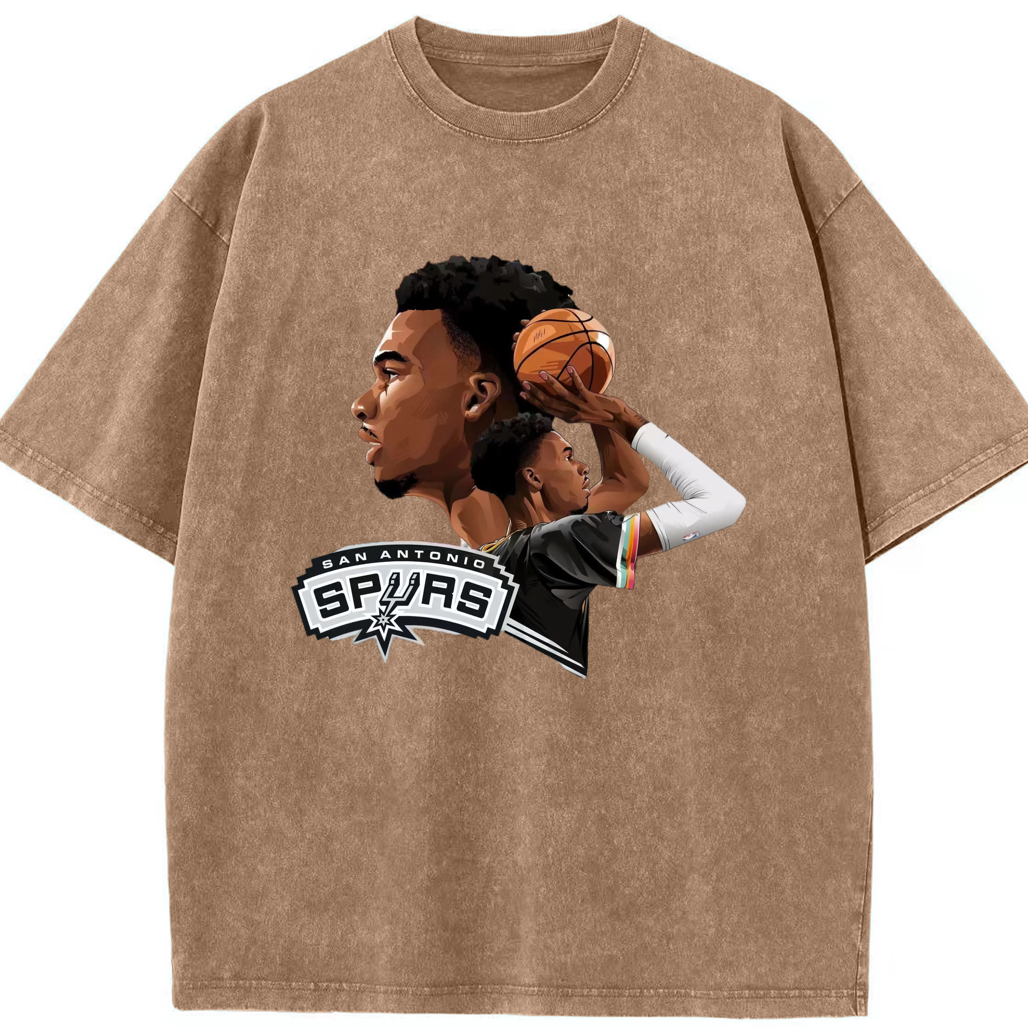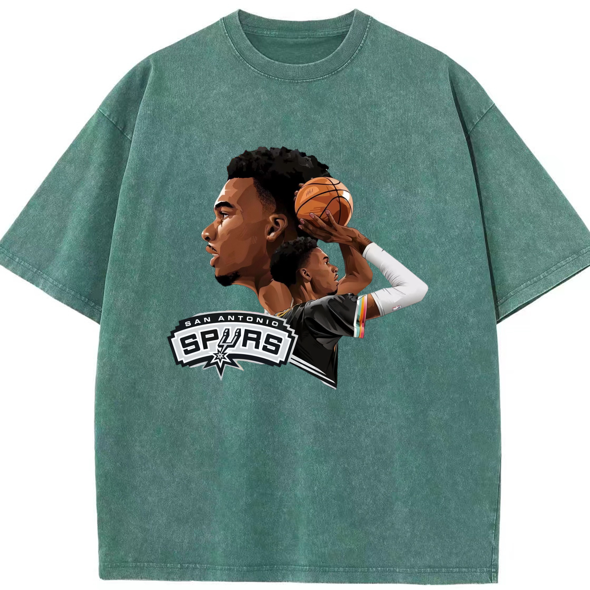 Victor Wembanyama wemby shoot T-shirt - Washed Vintage Look 230g Cotton Oversized T-Shirt With Front Heat Transfer Print – Soft, Lightweight, Stylish Fit – Comfortable Casual Wear For Sports & Everyday Use